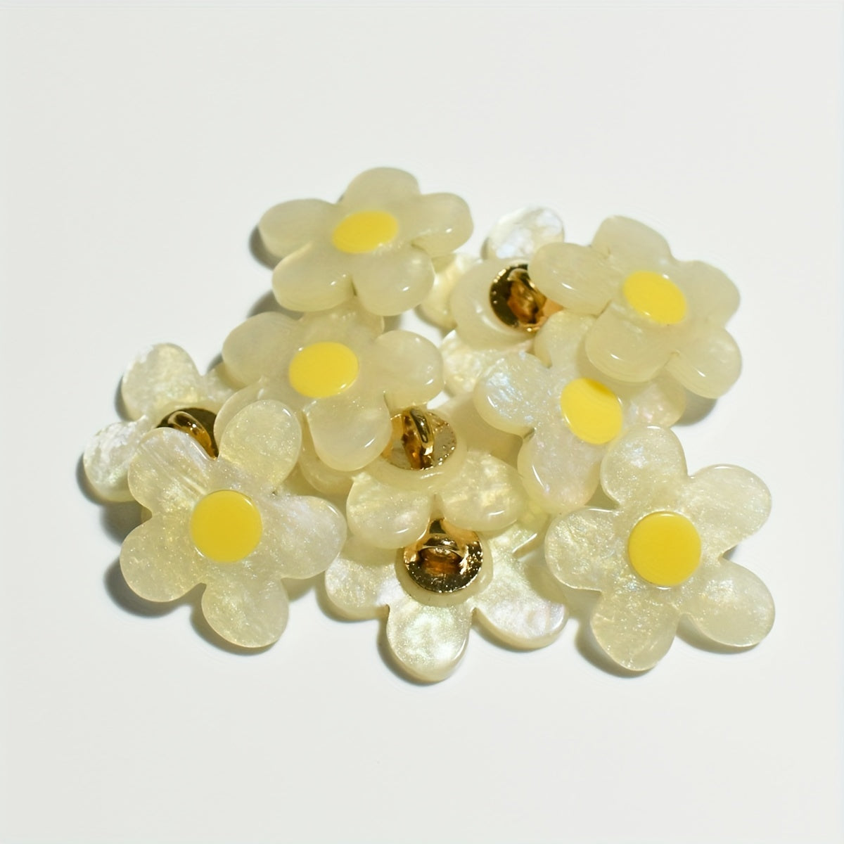 Add a touch of elegance to your clothing with these glossy yellow flower buckles. Perfect for coats, shirts, and collars.