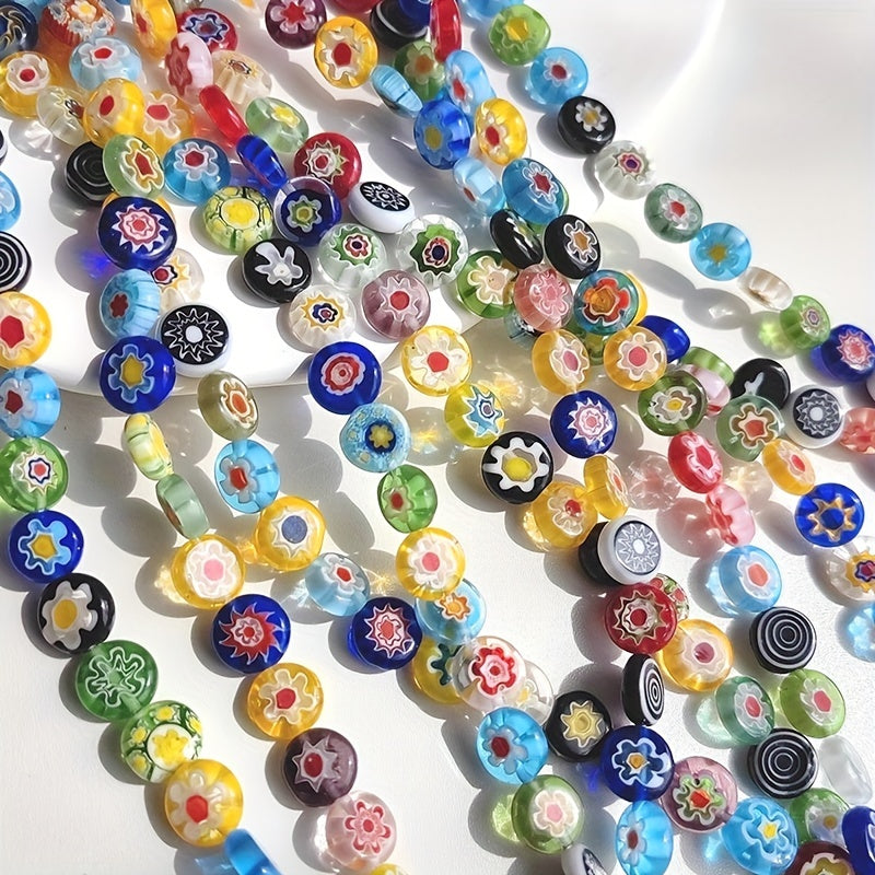 Add a pop of color to your DIY jewelry projects with these beautiful flower detail round flat beads. Perfect for creating bracelets, necklaces, and other accessories.