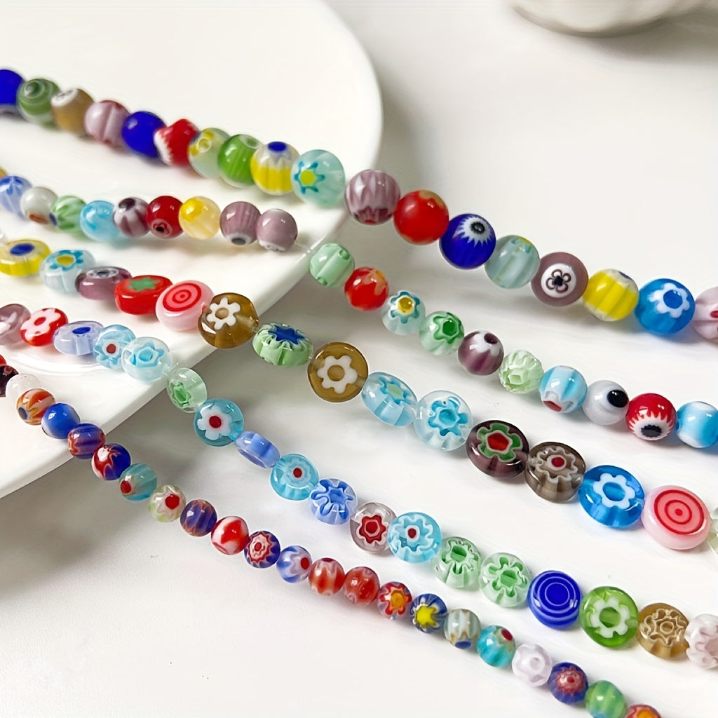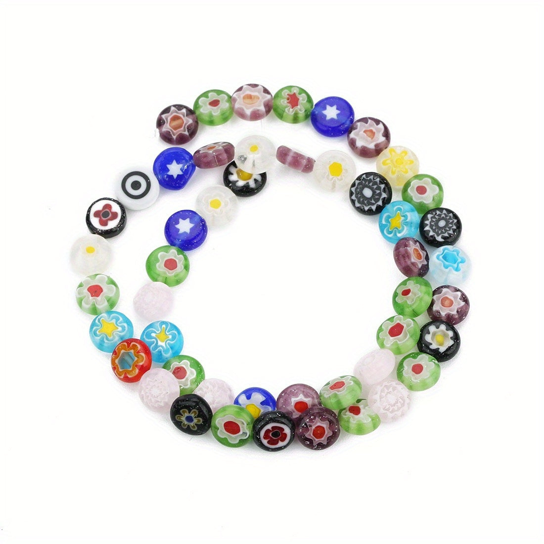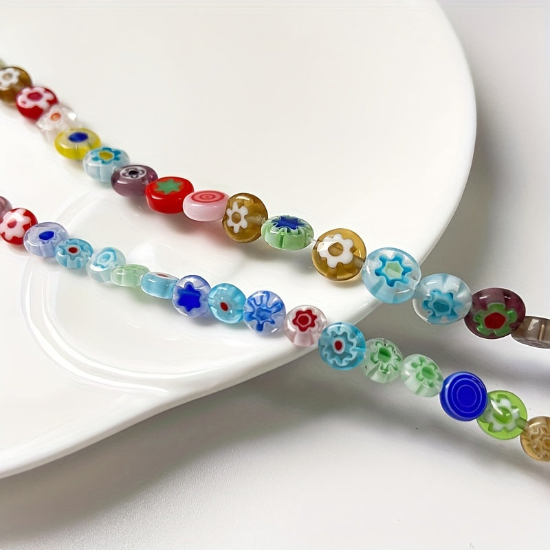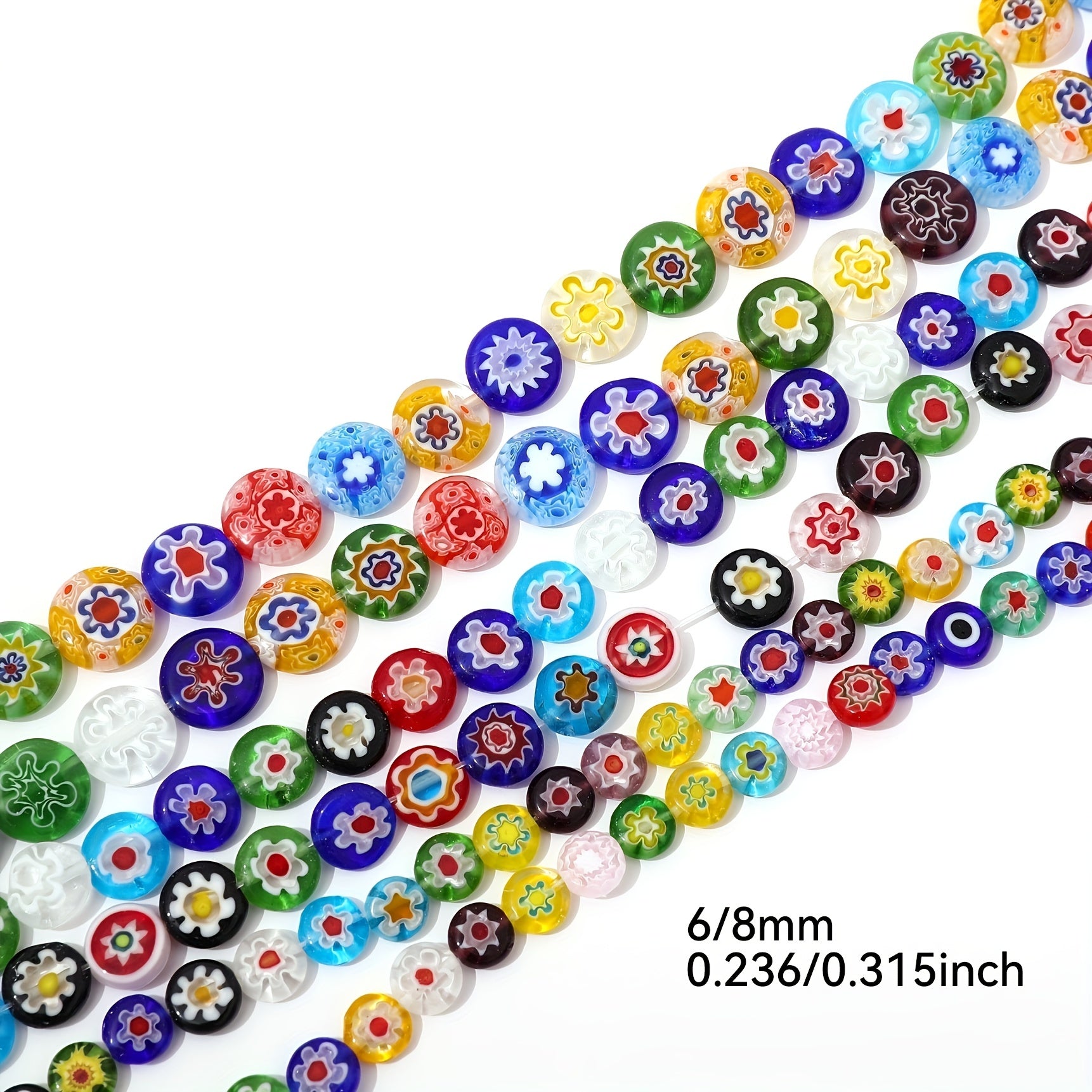 6 8mm Colorful Flower Detail Round Flat Beads For DIY Jewelry Semi-finished