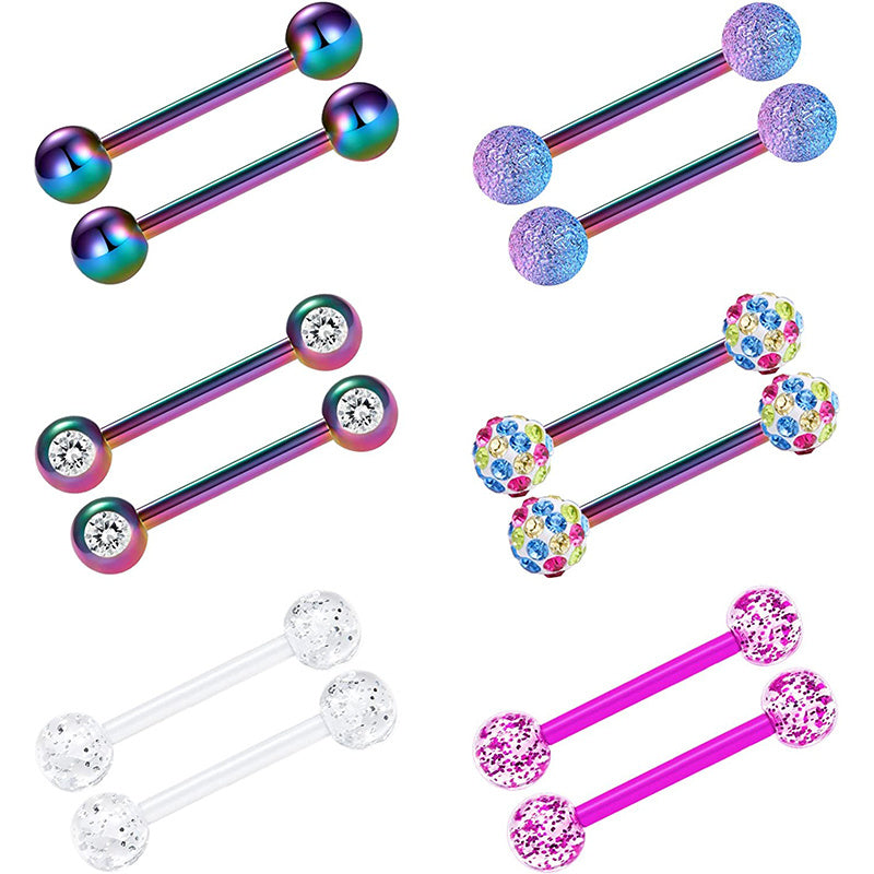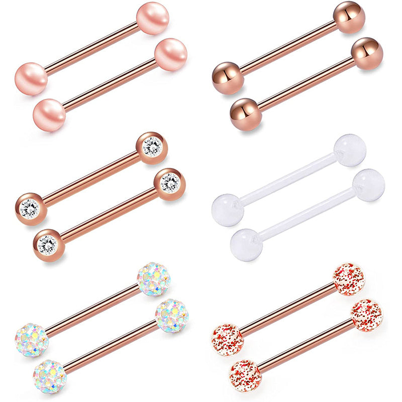 This set includes 6 pairs of nipple and tongue rings for women and girls. Made of high-quality materials, perfect for body piercing jewelry.