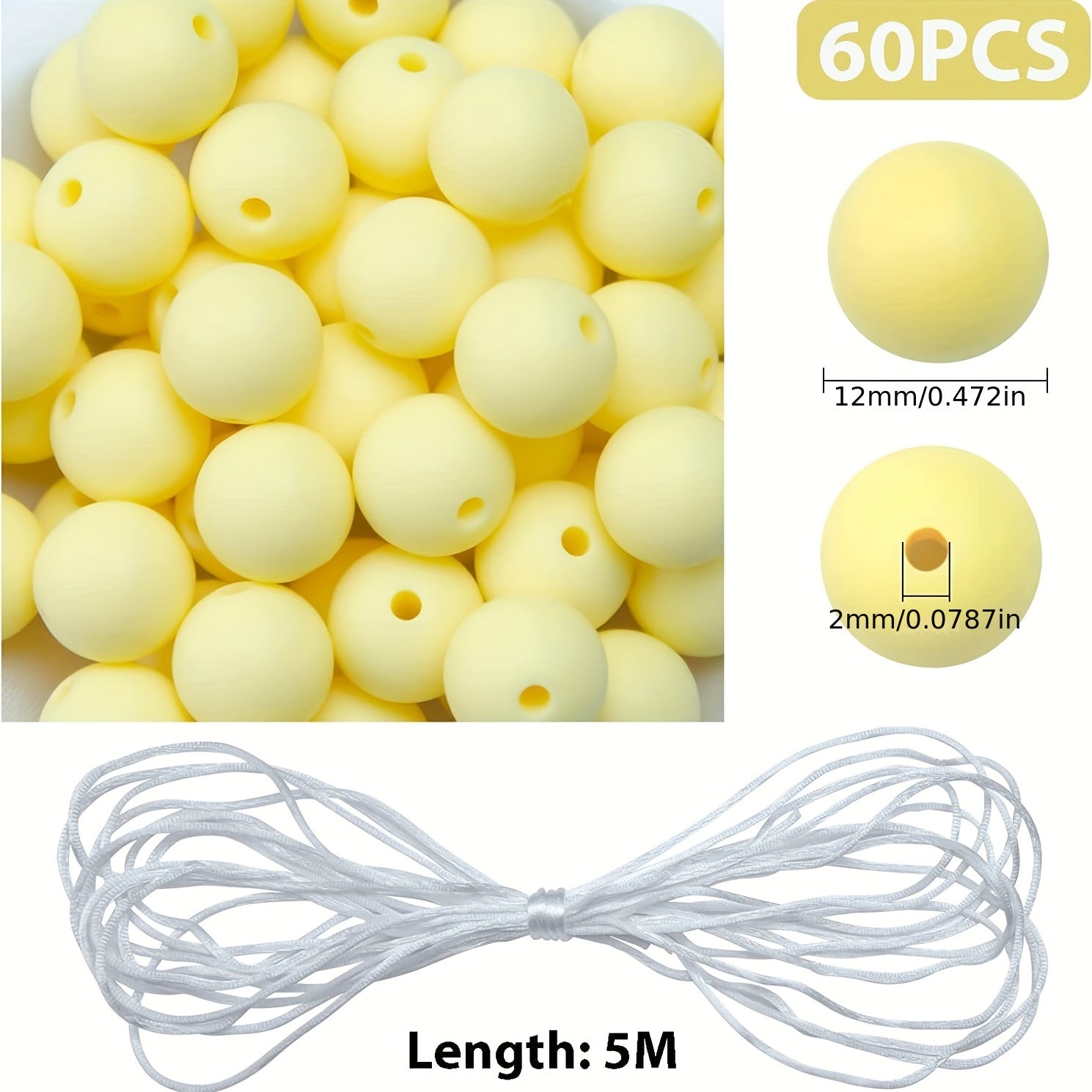This set includes 60 colorful silicone loose beads, perfect for making bracelets, necklaces, pacifier chains, and more. The beads are 12mm in size and can be used for various DIY projects.