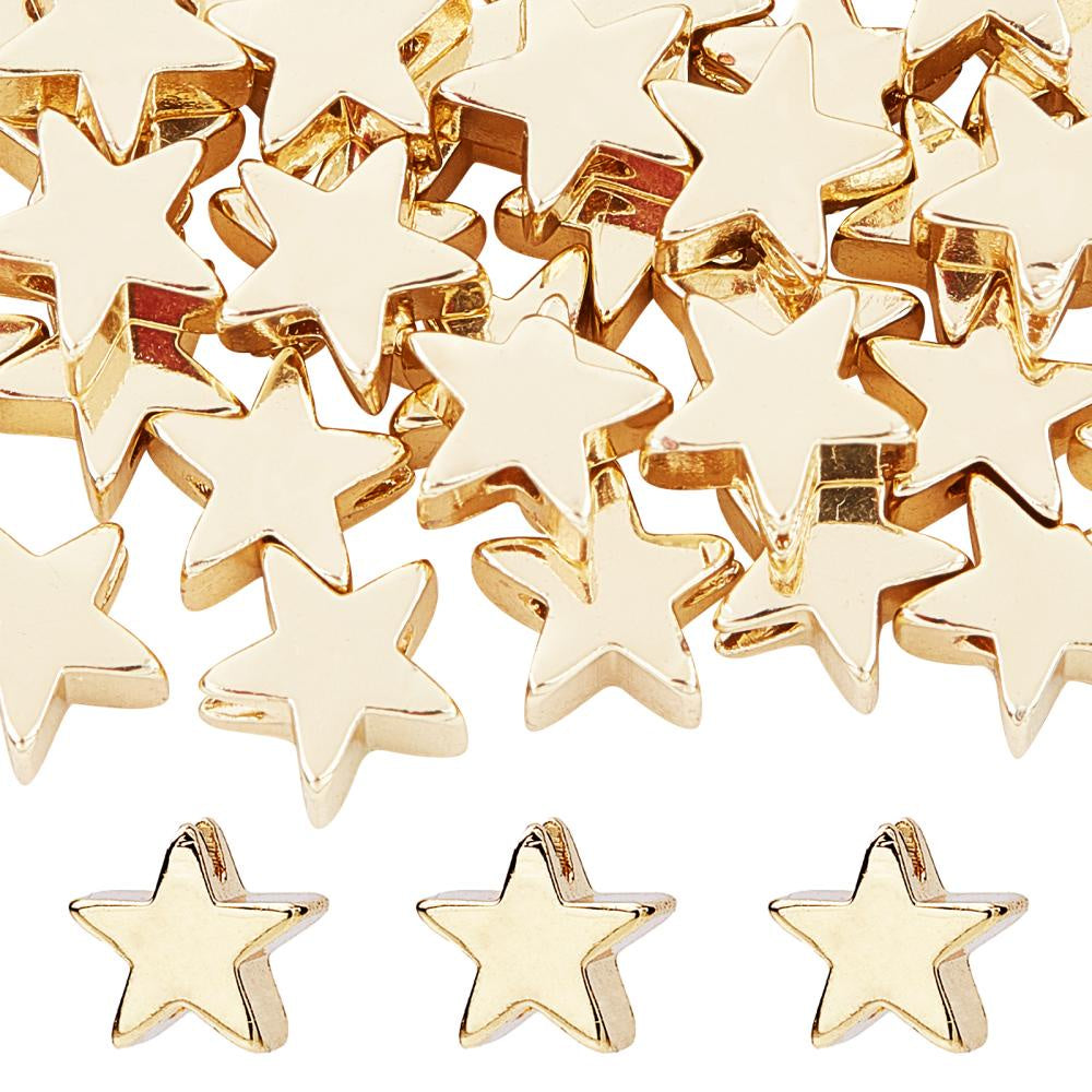Enhance your jewelry creations with this box of 60 golden pentagram brass beads. Perfect for making earrings, bracelet, necklace and other accessories.