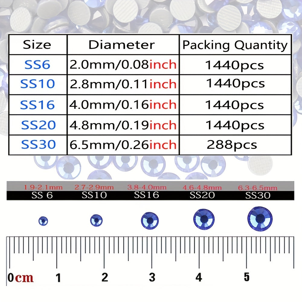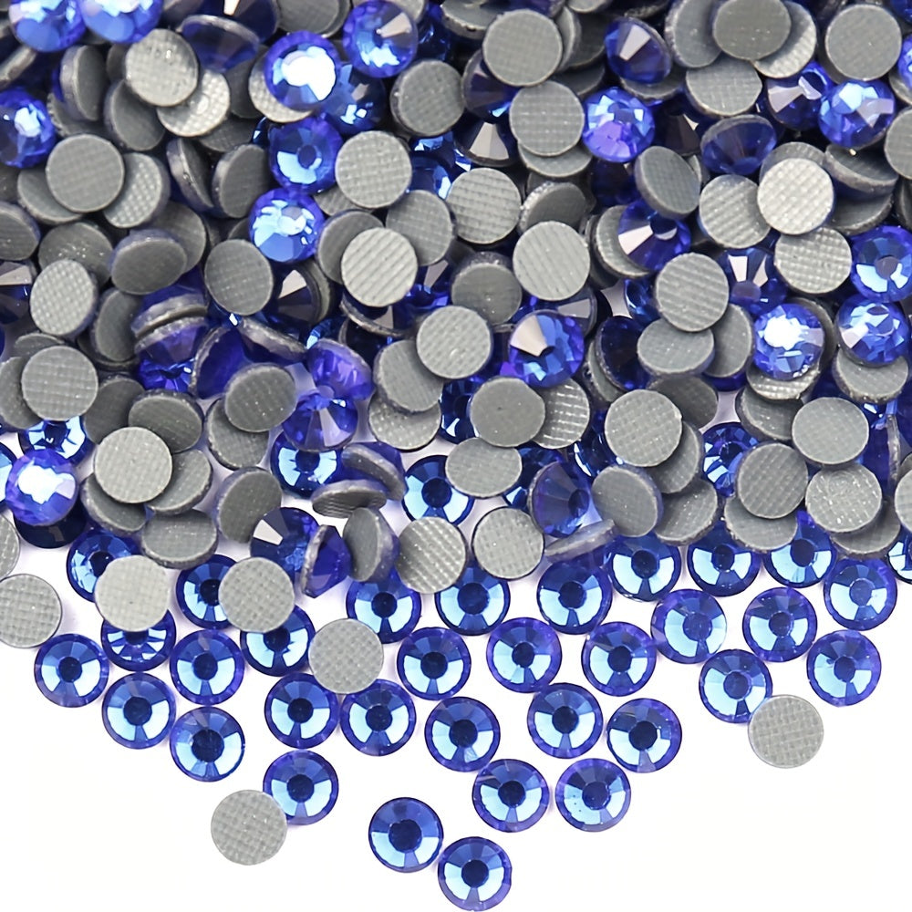 Add a touch of sparkle to your clothes, bags, and shoes with these 6.5mm sapphire hot fix rhinestone flatback charms. Made of glitter glass, these hotfix stones are perfect for enhancing your style.