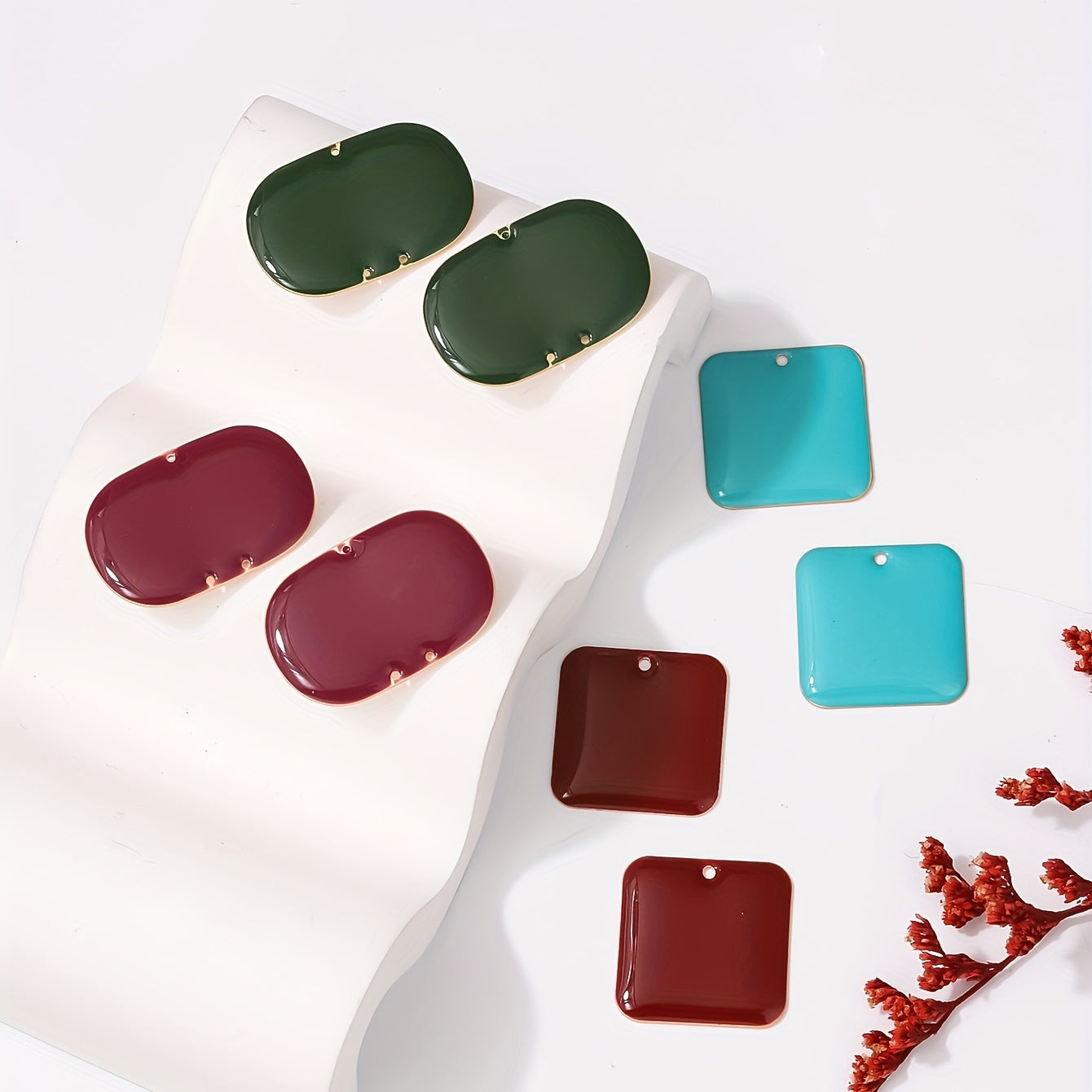 This set includes 6 colorful drip oil pendants in square, oval, and geometric shapes. Perfect for creating earrings, bracelets, necklaces, and other accessories.
