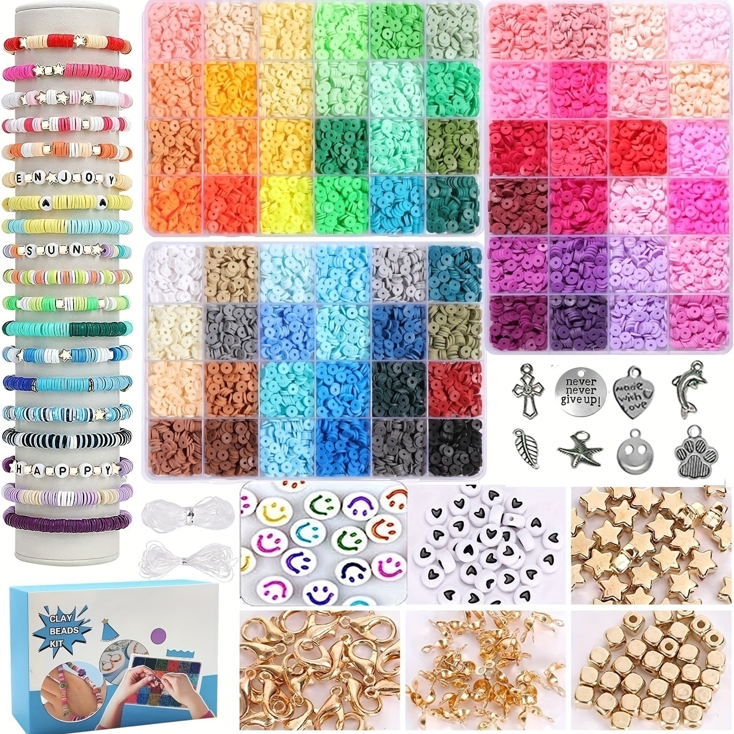 This kit includes 8420pcs of flat round polymer clay beads and letter beads for jewelry making. Perfect for crafting beautiful bracelets.