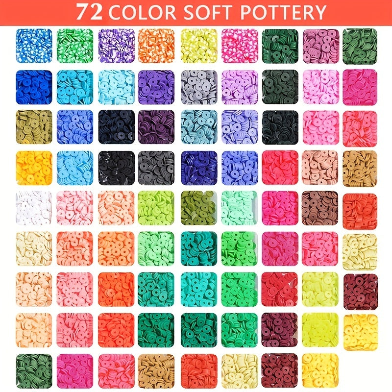 Create beautiful DIY jewelry with this set of 7200 soft clay chips in 72 colors. Perfect for handcrafted bracelets and beaded accessories.