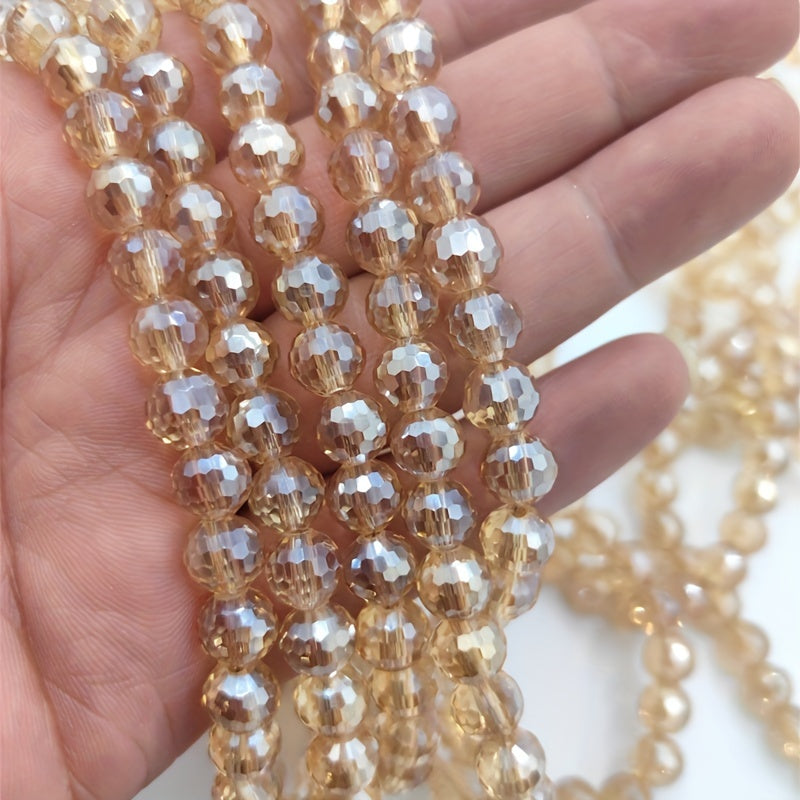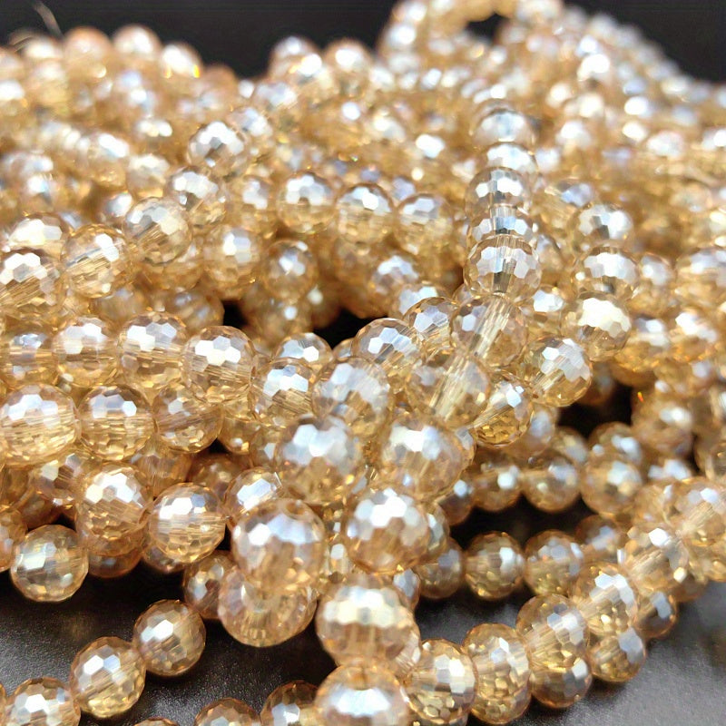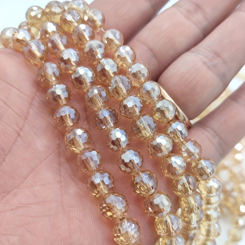 8mm Champagne Round Glass Beads AB Colour Faceted Shape Crystal Spacer Beads