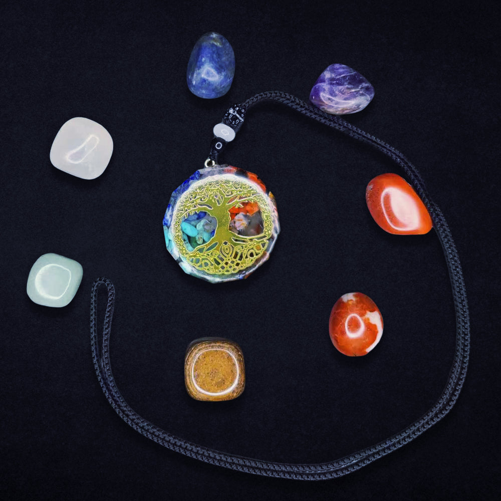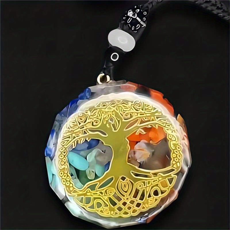 Enhance your style with this set of 8 colorful vintage natural crystal tree round pendant necklaces. Perfect for yoga, meditation, and as art craft accessories.