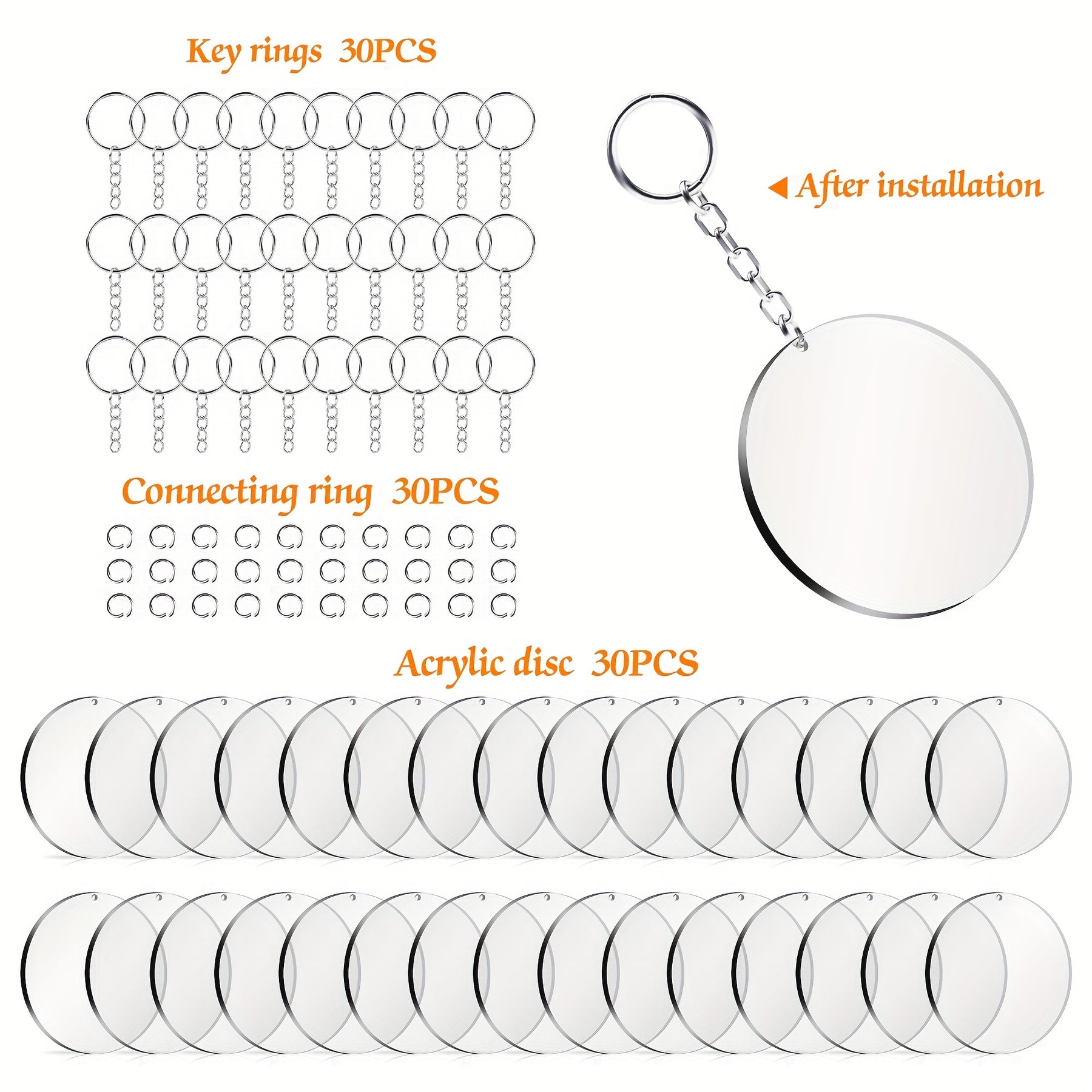 90 Pcs Acrylic Keychain Blank Set - Round Acrylic Ornament Blanks, Key Rings
