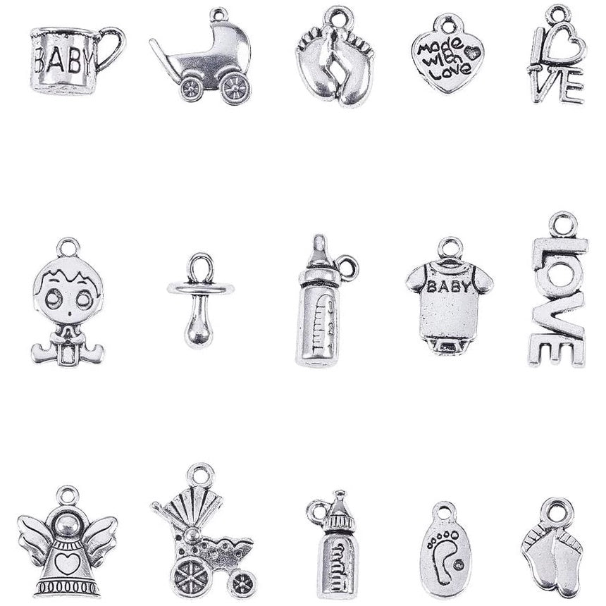 Enhance your creativity with this set of 90 antique silver alloy pendants and charms, perfect for earrings, bracelets, necklaces, and more. Ideal for baby birth and christening themed projects.