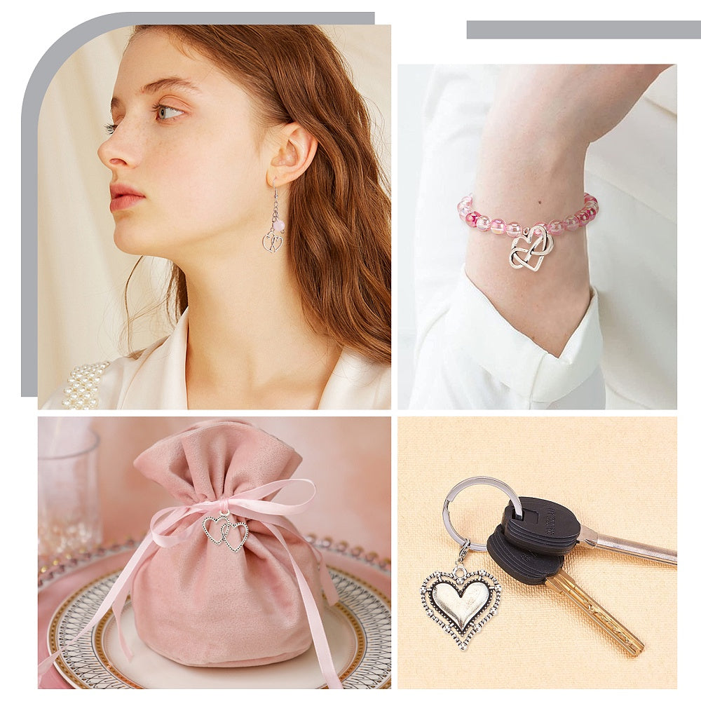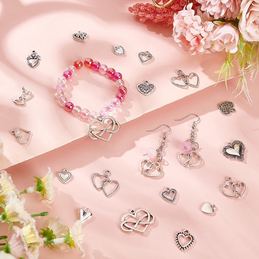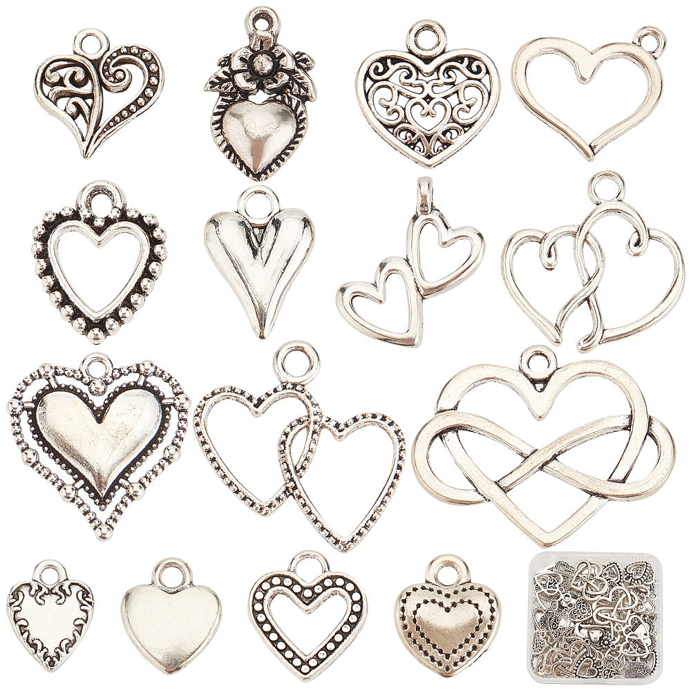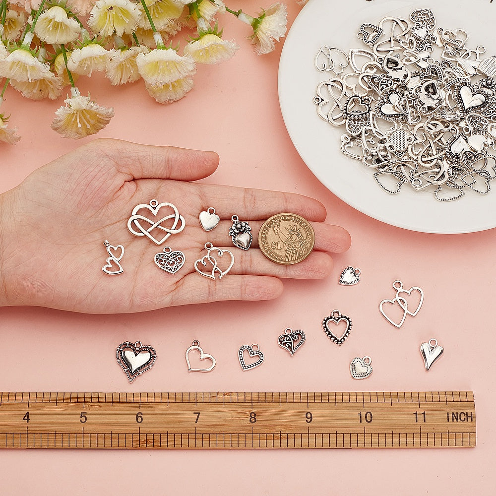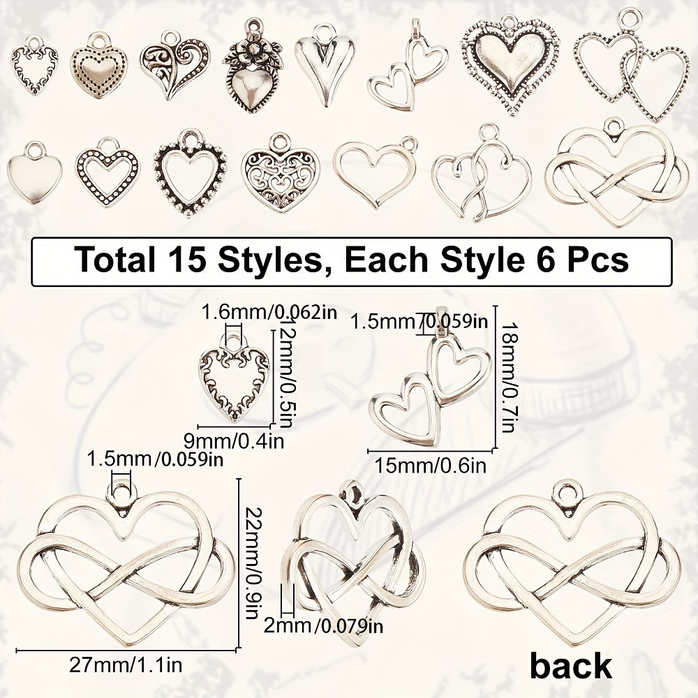 90Pcs Antiqued Heart Alloy Pendant Romantic Charms
