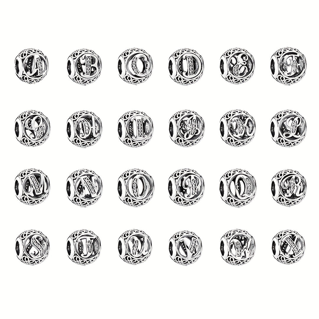 925 Silver A-T Letter Charm Alphabet Beads for Bracelet DIY Jewelry