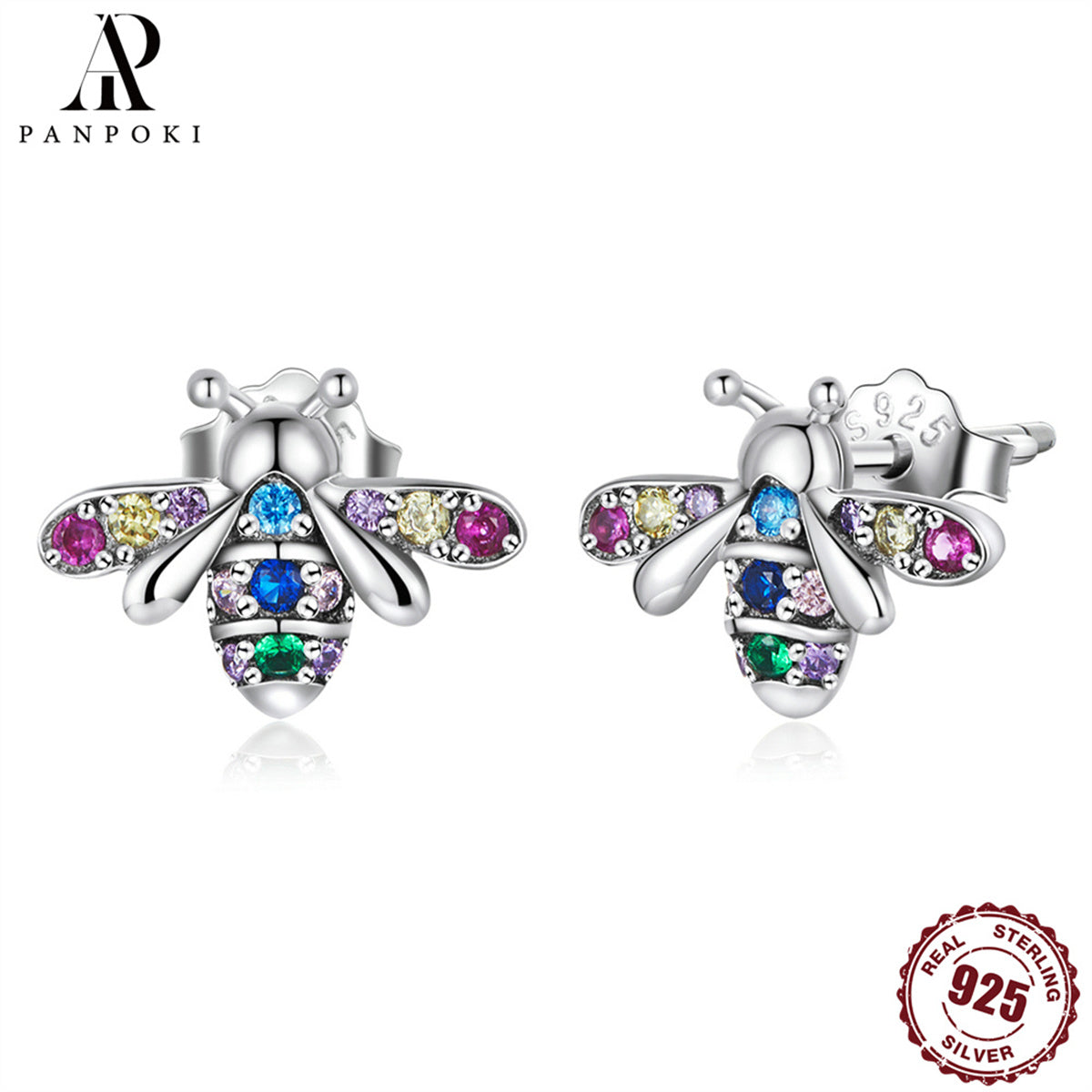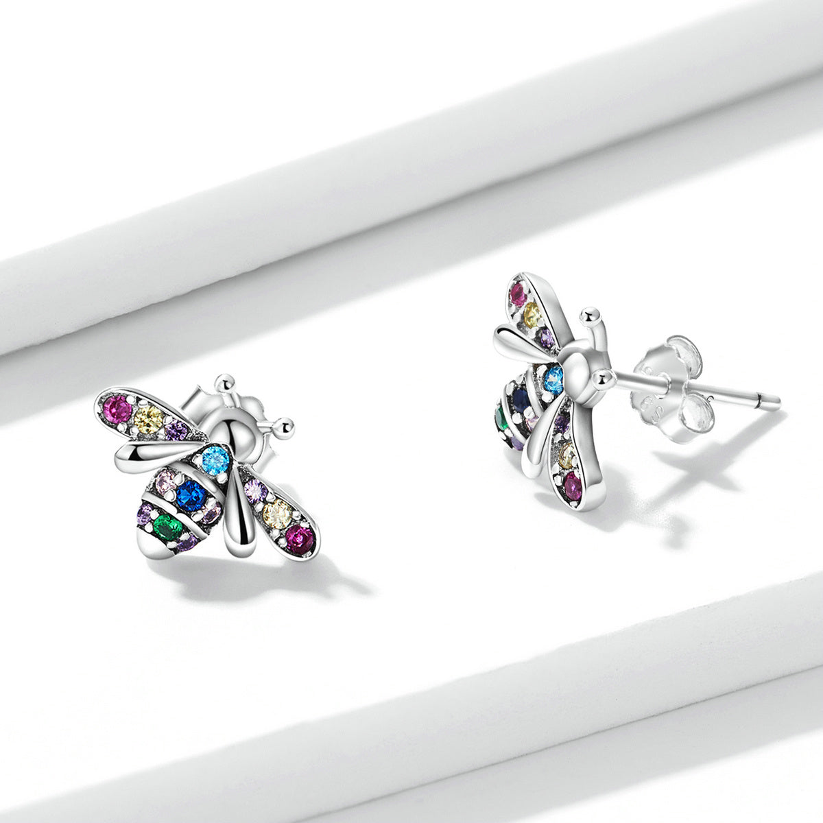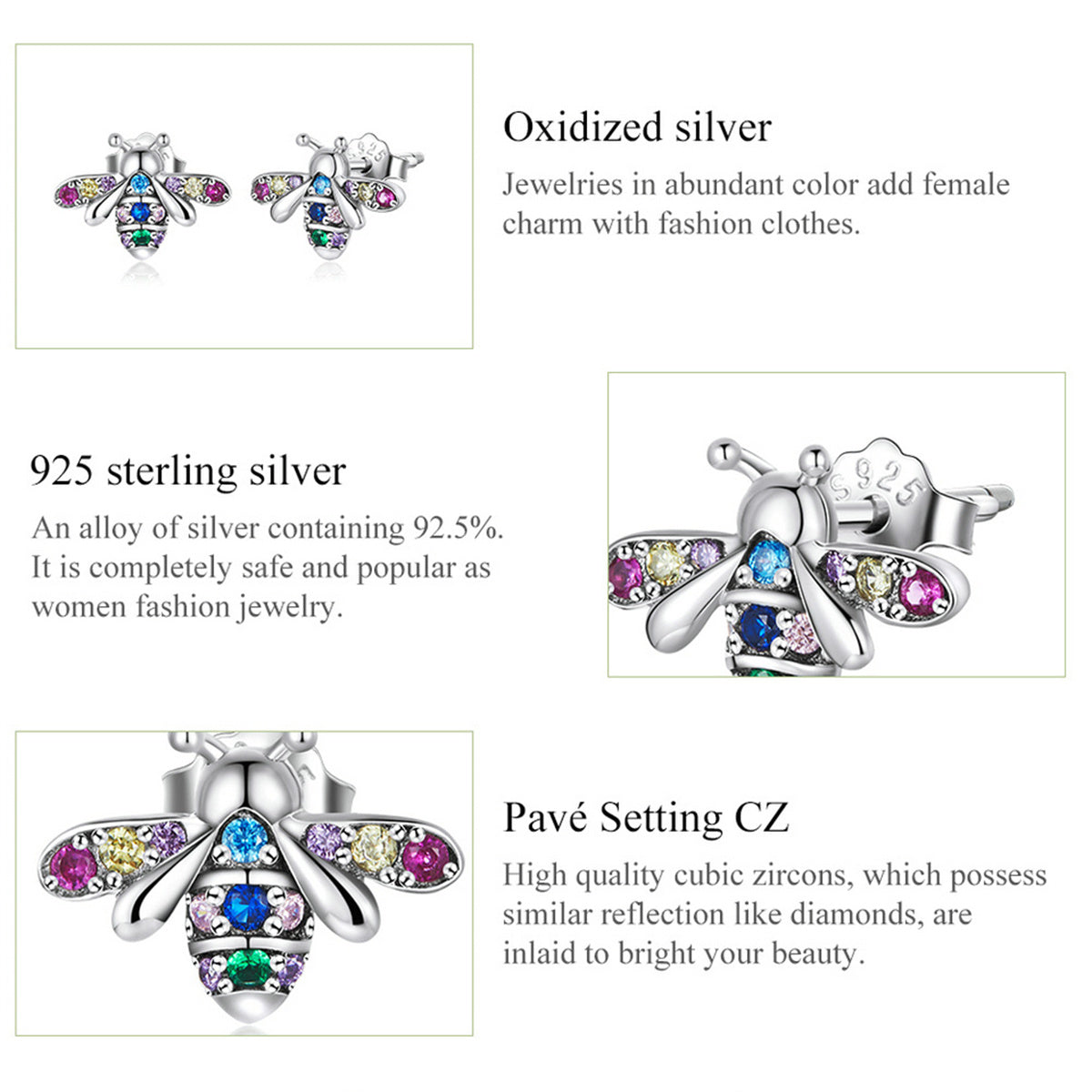 Add a splash of color to your look with these bee stud earrings made of 925 sterling silver. Decorated with zircon stones, these earrings are a perfect accessory for any occasion.