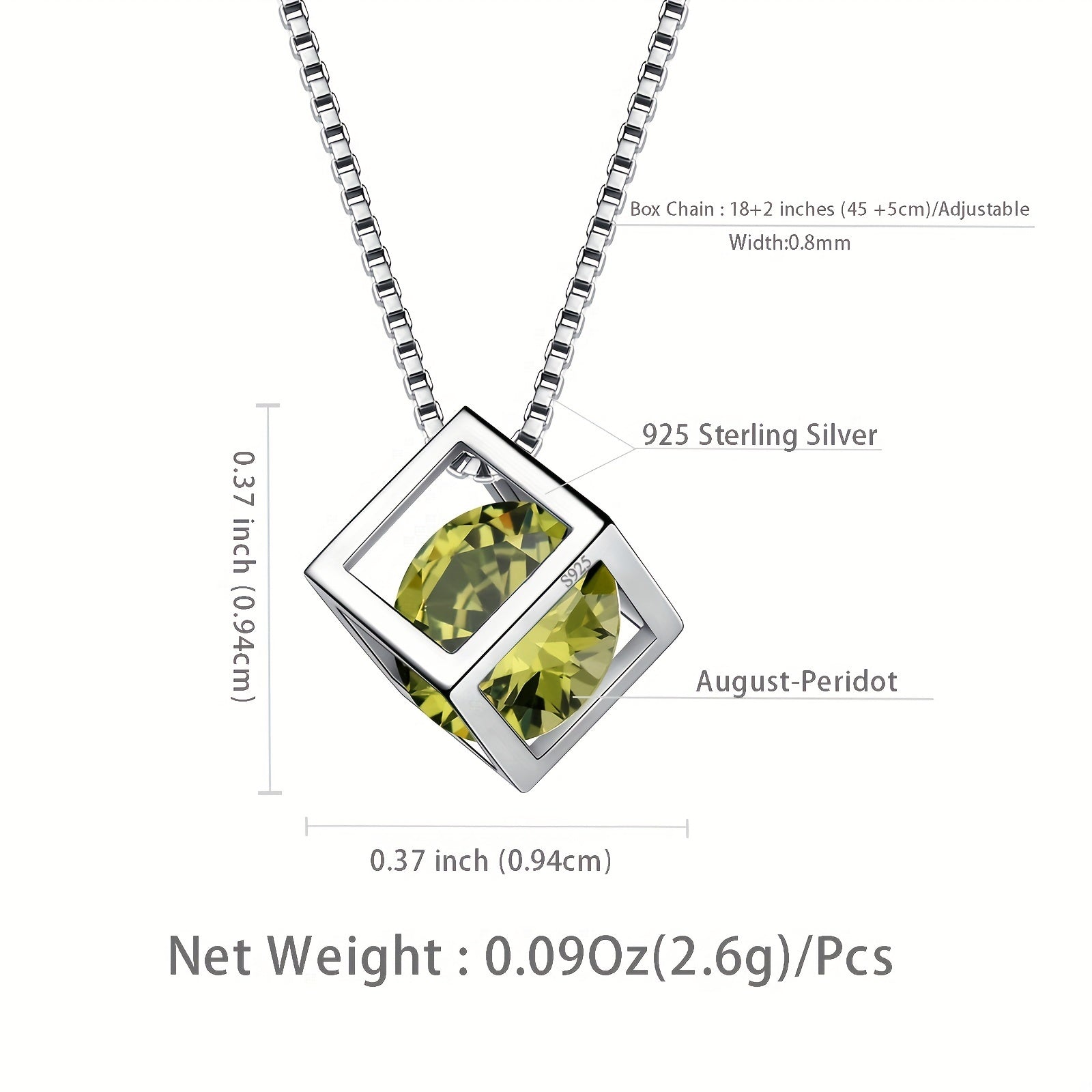 Add a touch of elegance with this stunning 925 sterling silver birthstone necklace featuring a 3D cube birthstone pendant made with sparkling cubic zirconia. Perfect for everyday wear or special occasions.