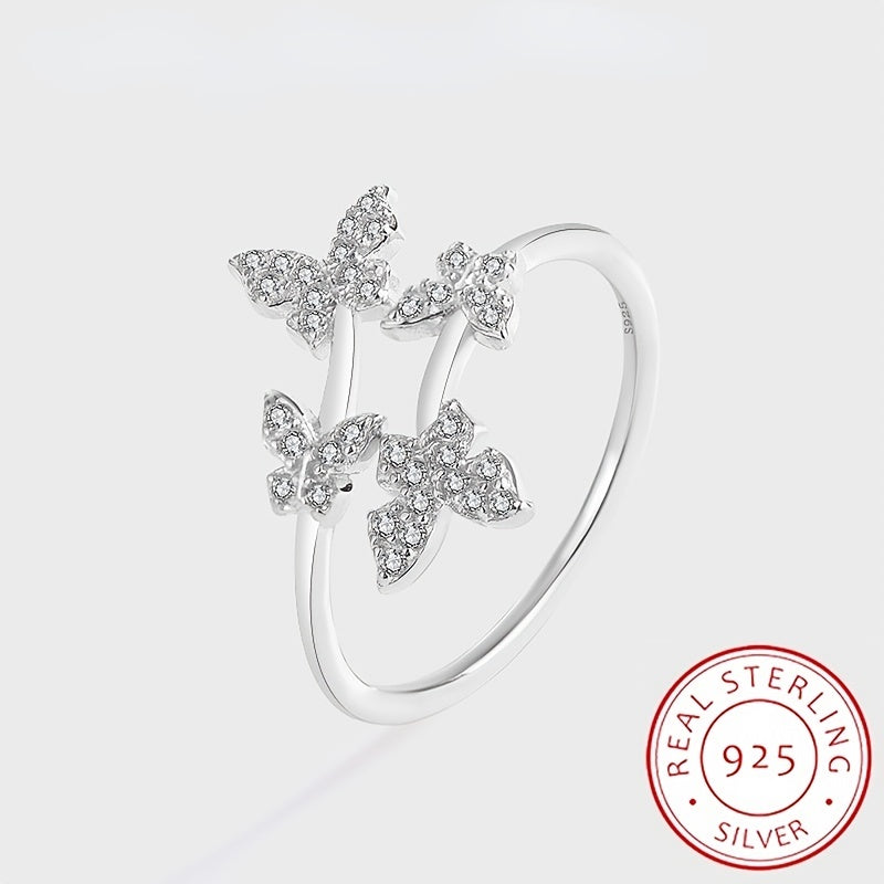 Enhance your style with this beautiful 925 sterling silver butterfly ring. The open design allows for easy adjustment to fit any finger size. A perfect accessory for animal lovers.