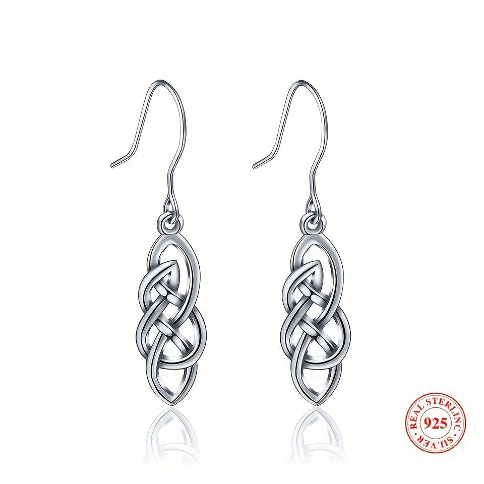 Add a touch of bohemian style to your look with these retro-inspired 925 sterling silver earrings featuring a knot Celtic design. The silver plating adds an elegant touch to any outfit.