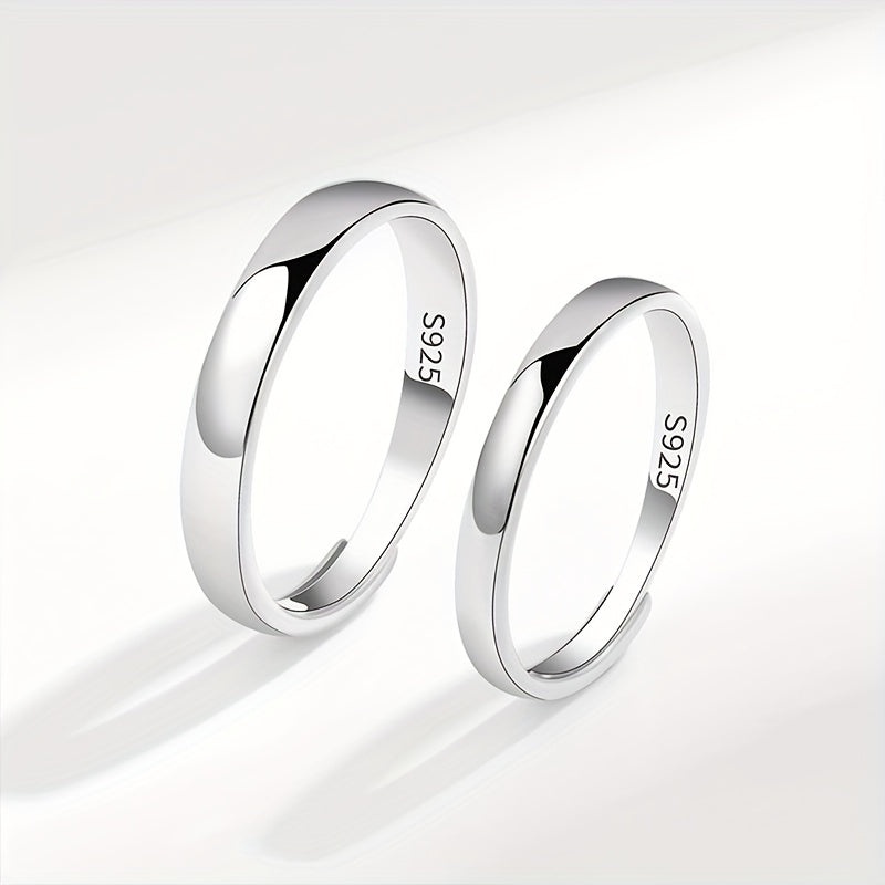 925 Silver Couple Ring Polish Surface Adjustable Cuff Ring