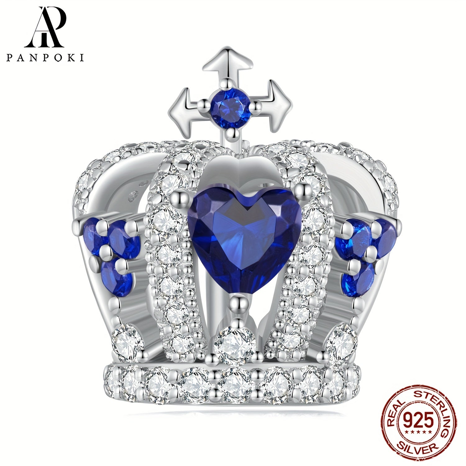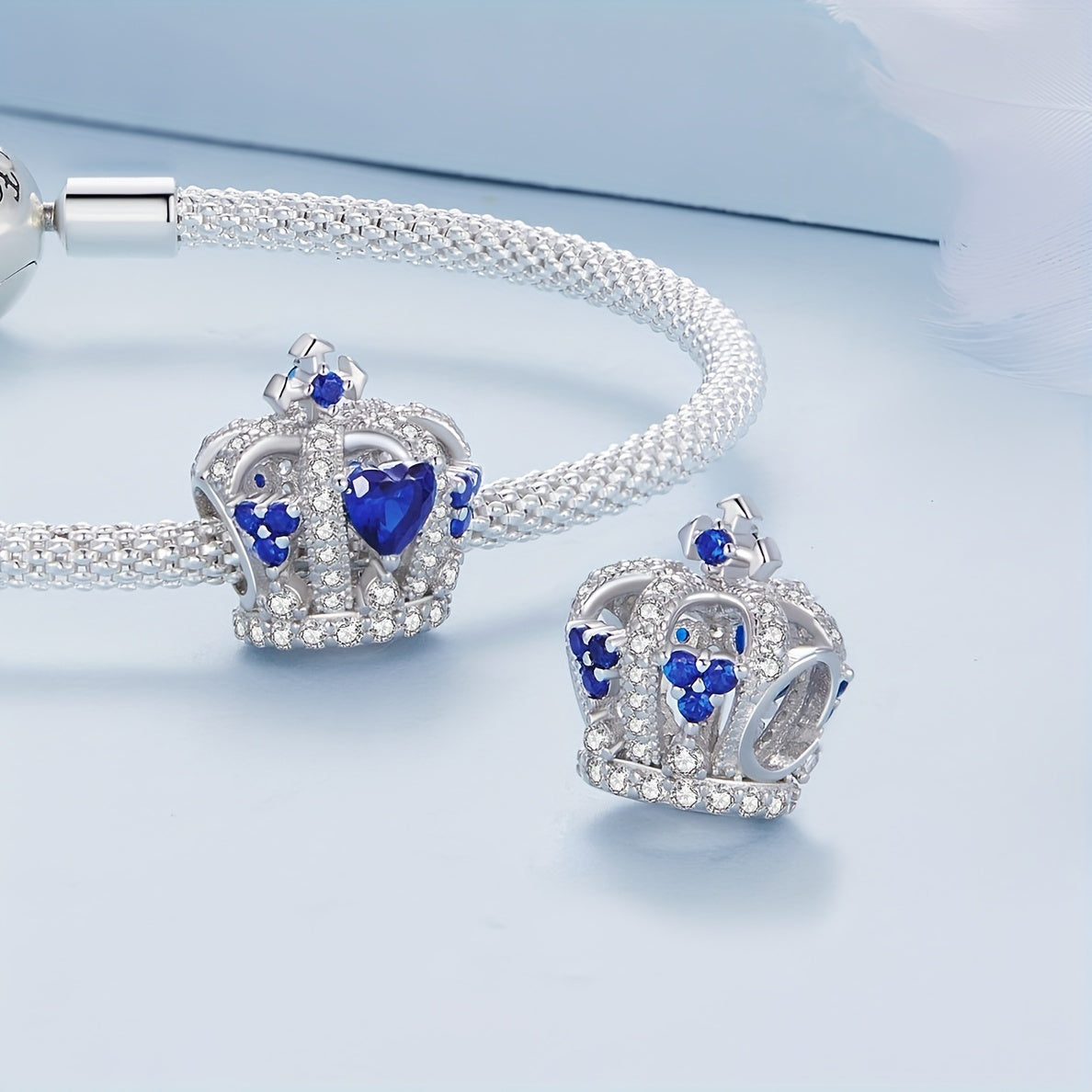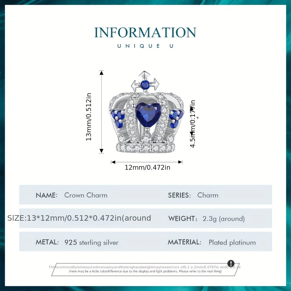 Elegant and charming 925 sterling silver crystal heart crown beads designed for women's bracelet and bangle DIY projects. Create your own stunning jewelry with these fine quality beads.