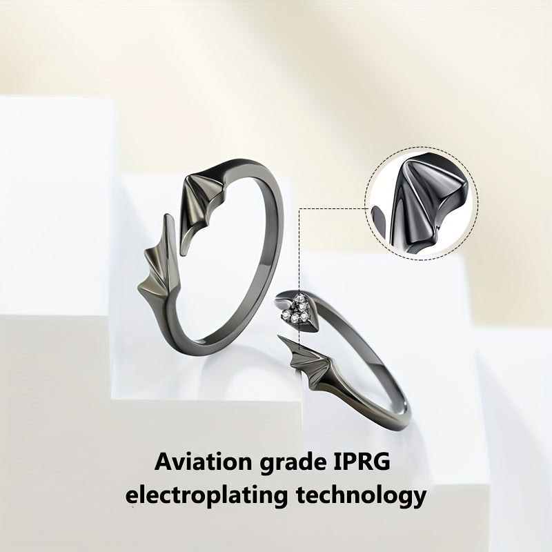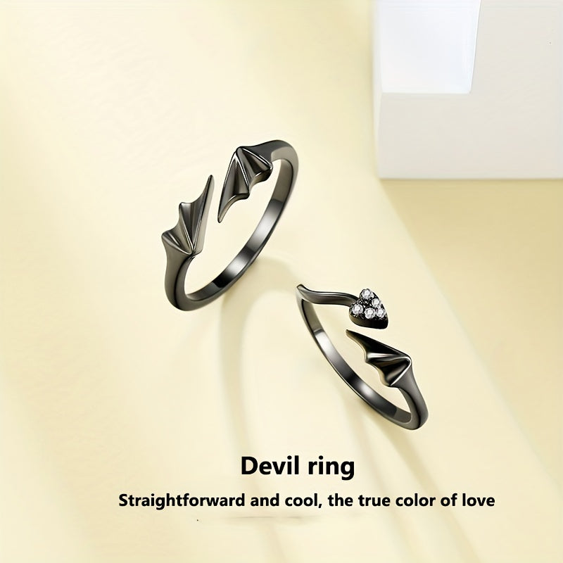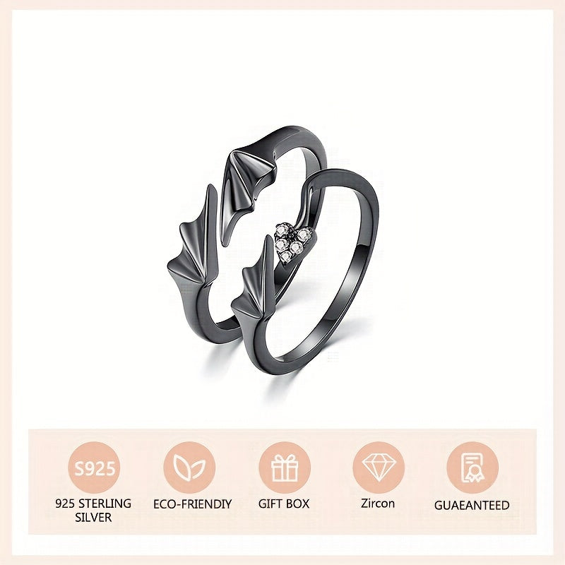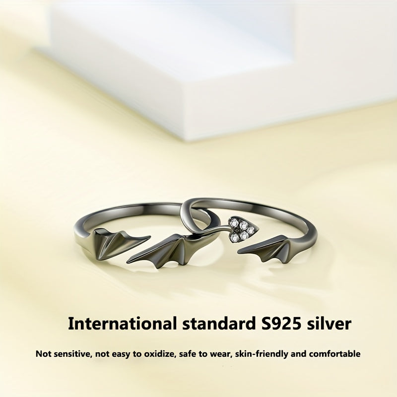 Add a devilish touch to your outfits with this 925 sterling silver couple ring featuring devil wings and heart-shaped zircon, ideal for Halloween or daily wear.