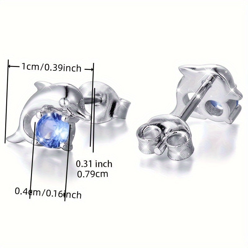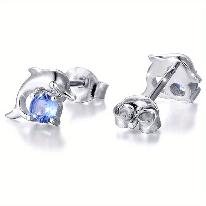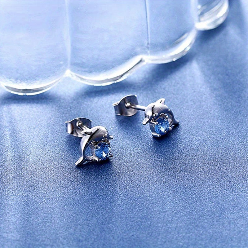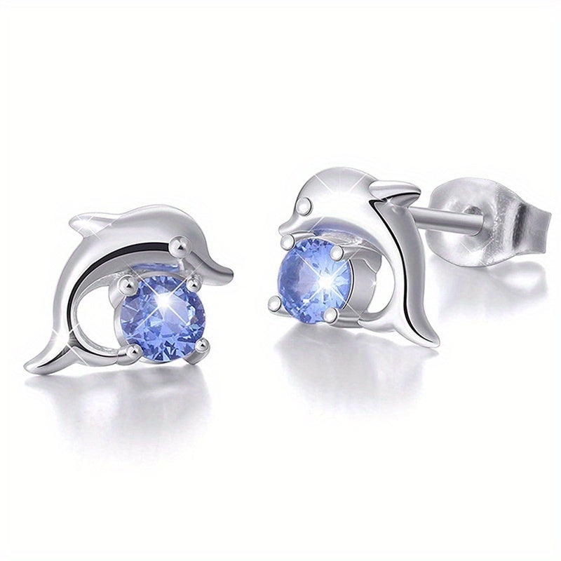 Add a touch of whimsy to your outfit with these charming dolphin stud earrings. Crafted from 925 silver plated metal, they feature round cut sea gemstones that catch the light with every move.