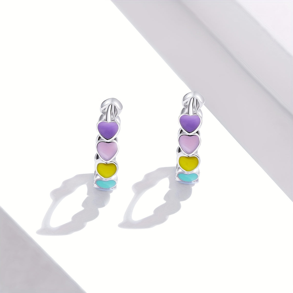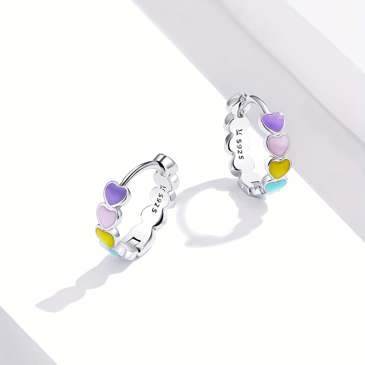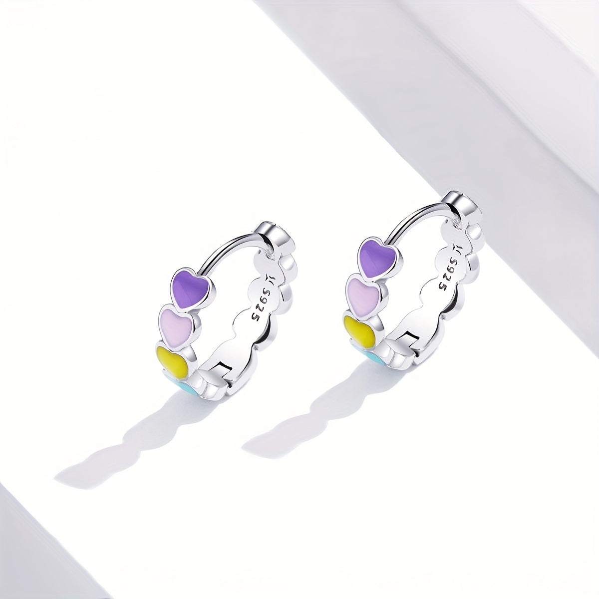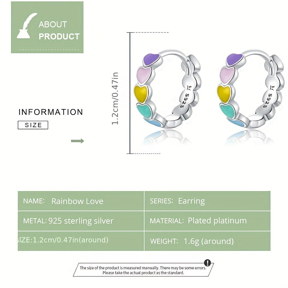 925 Silver Enamel Heart Hoop Earrings Rainbow Jewelry Gift