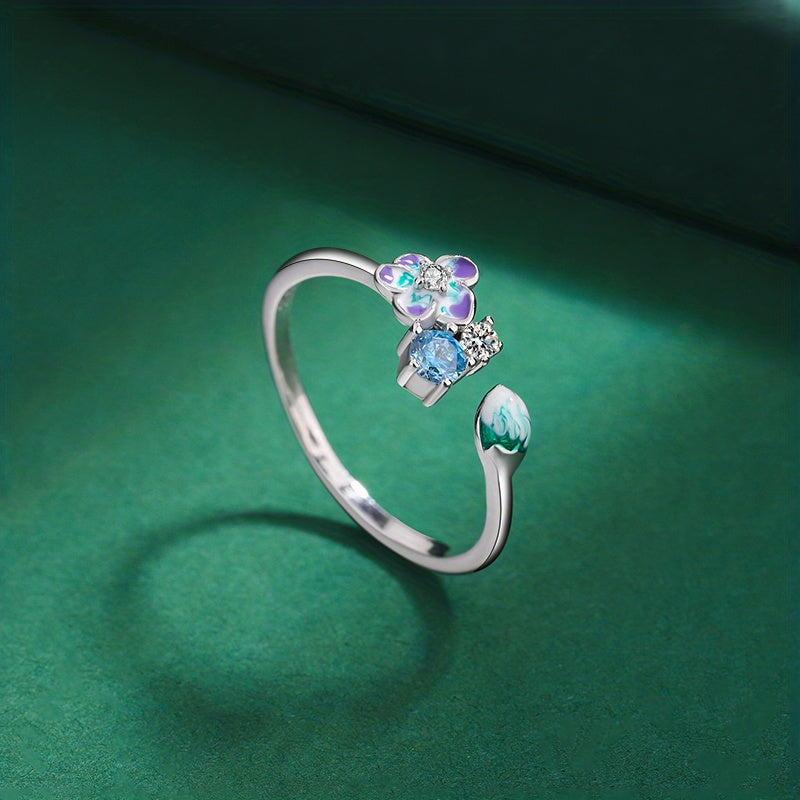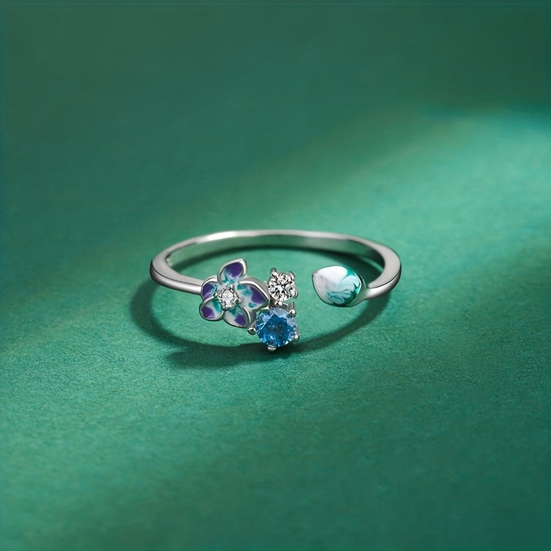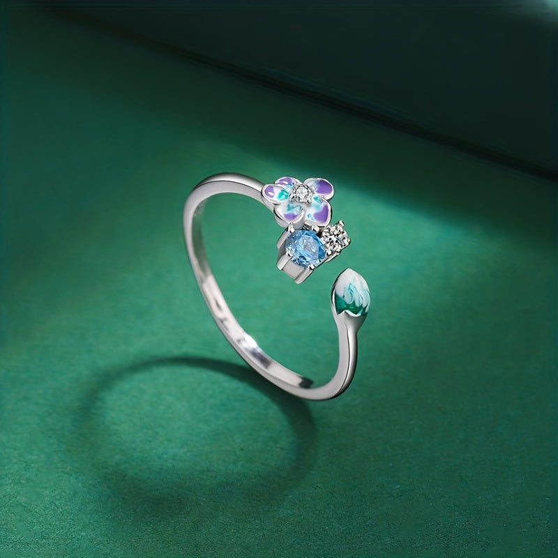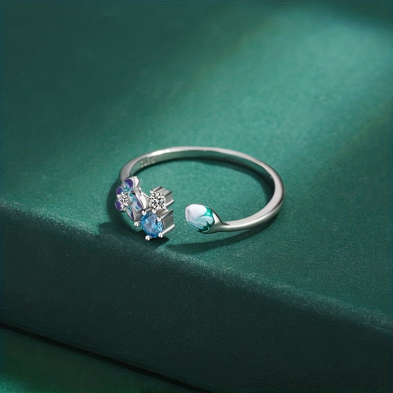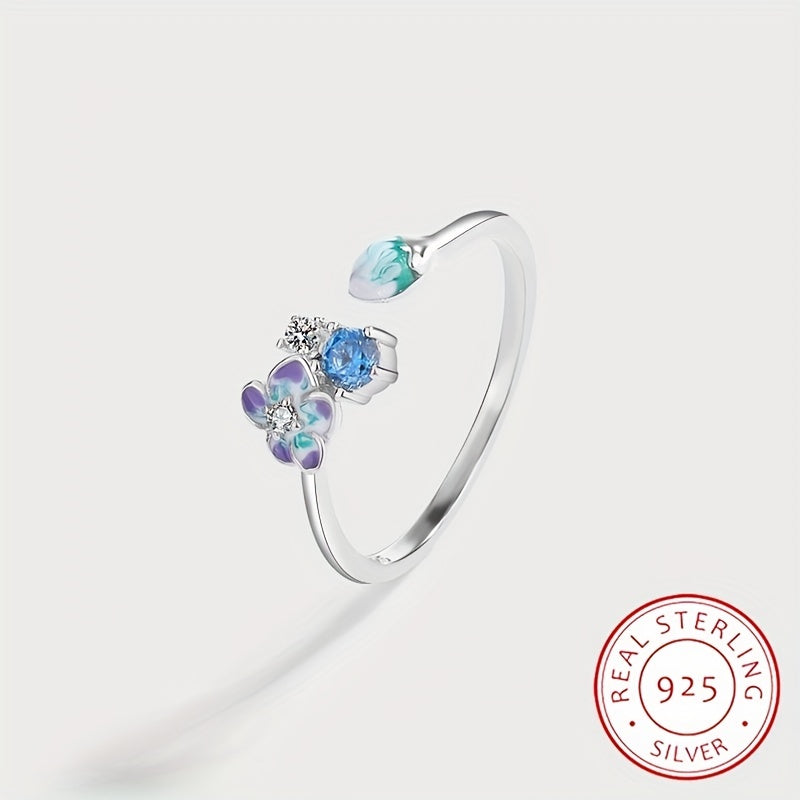 Elegantly crafted 925 sterling silver open ring featuring gradient epoxy zircon flower design. Perfect for adding a touch of sophistication to your ensemble.