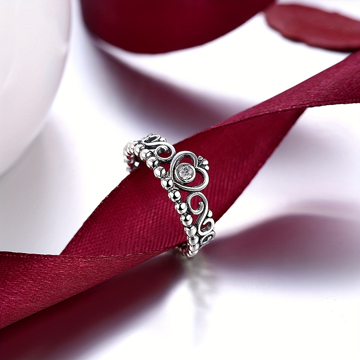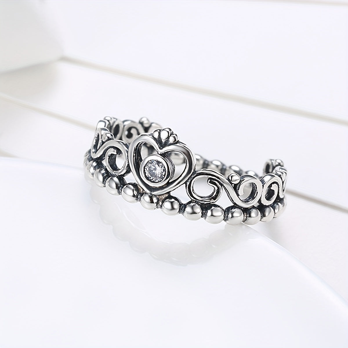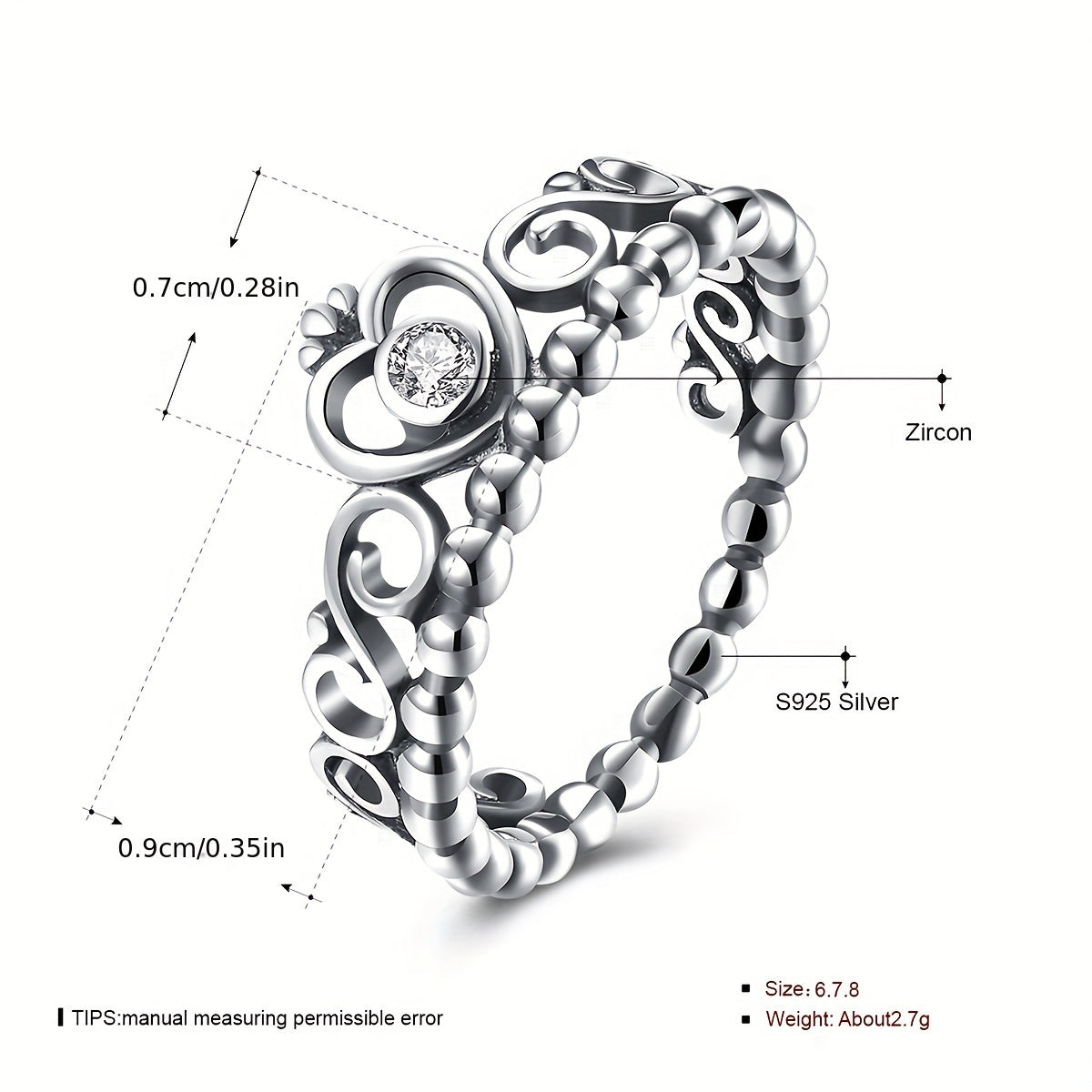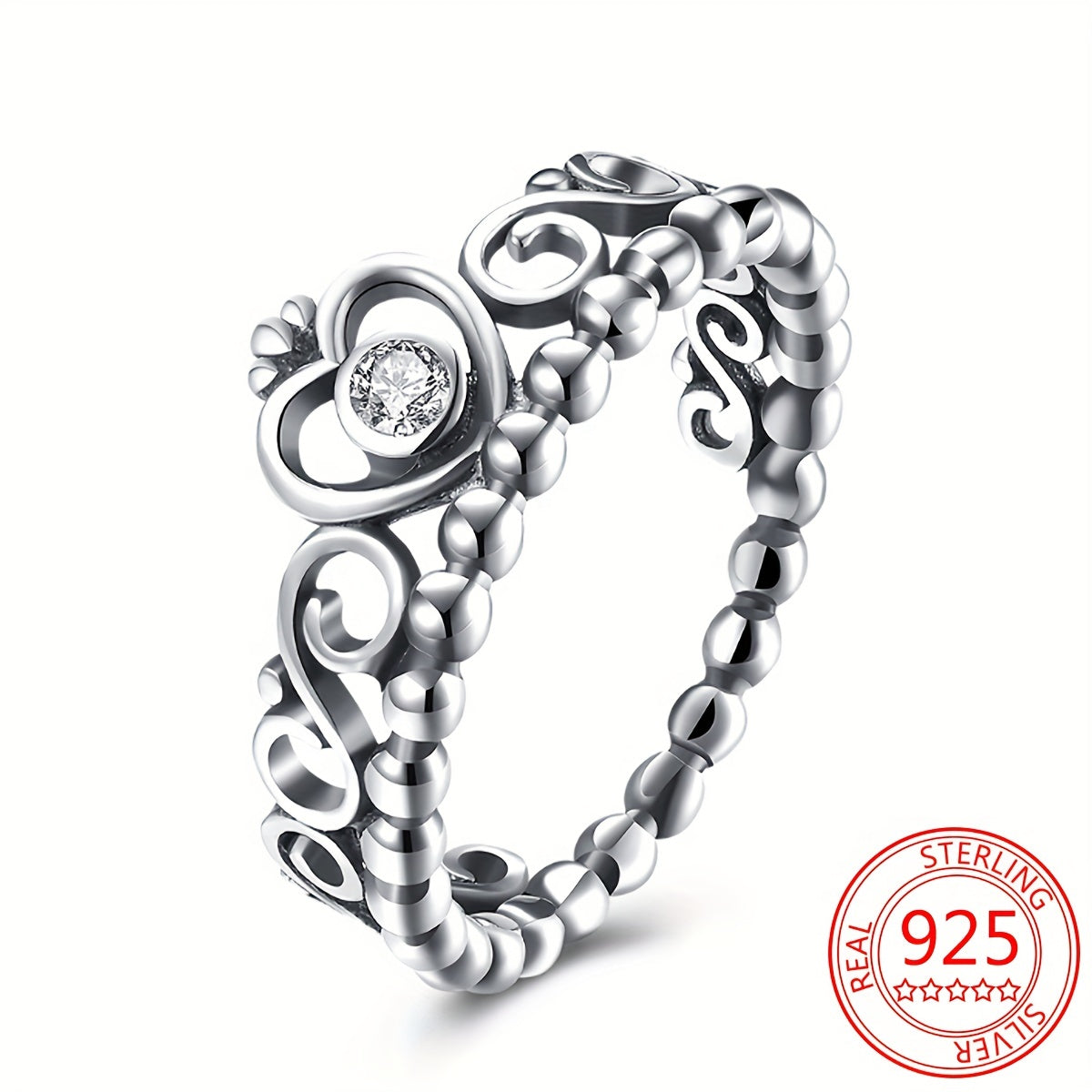 This stunning 925 sterling silver ring features a heart shape crown design with inlaid sparkling rhinestones. Perfect for engagement or wedding scenes, it makes a sweet and meaningful gift for her.