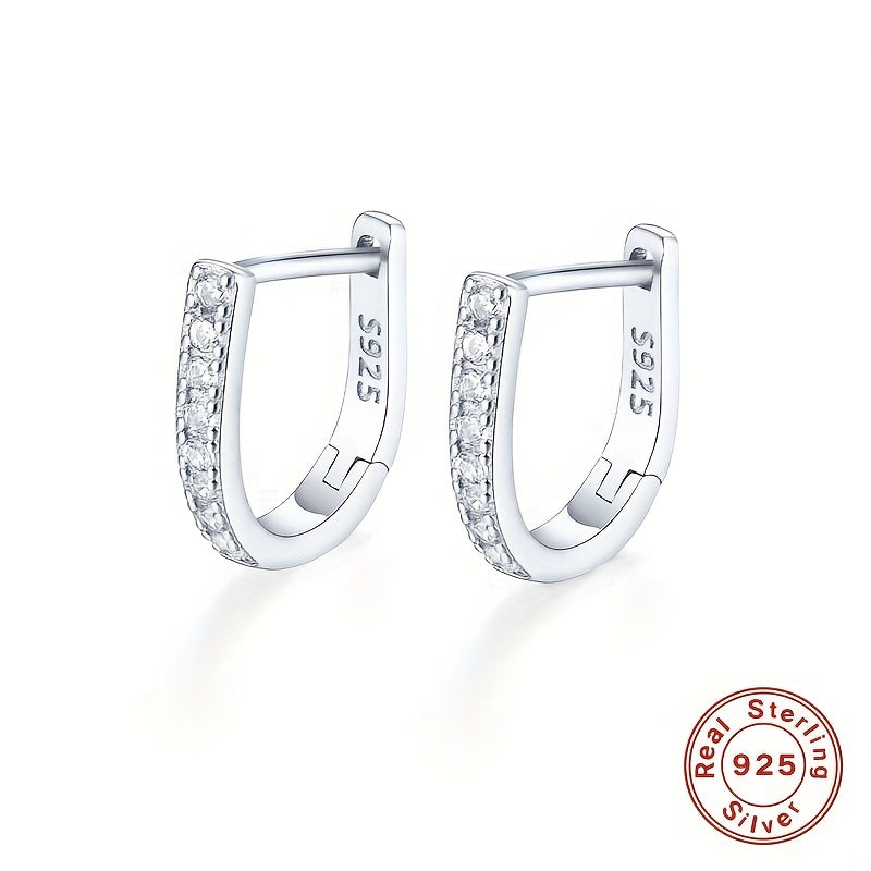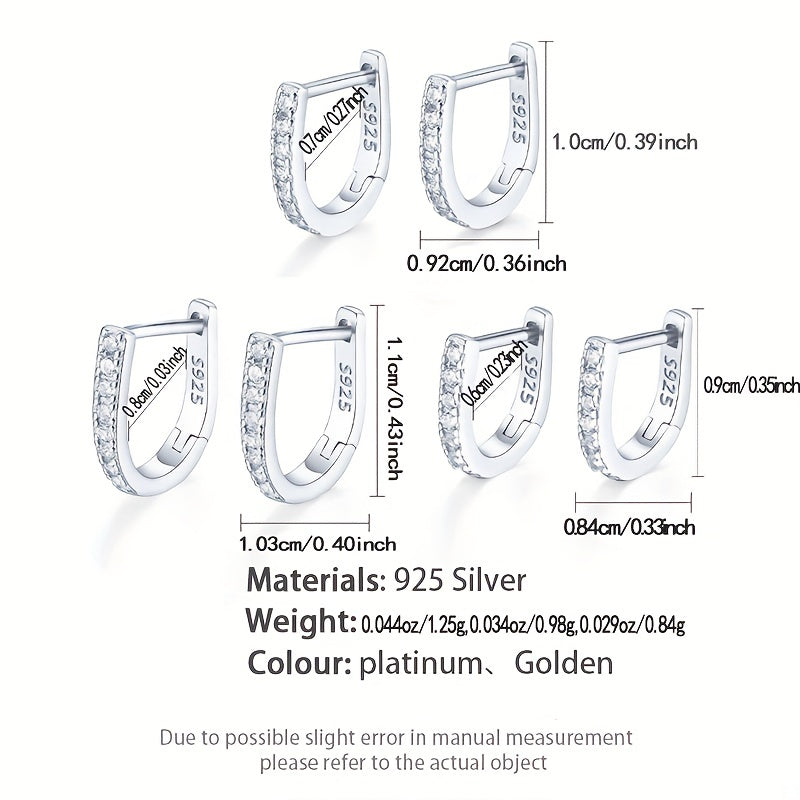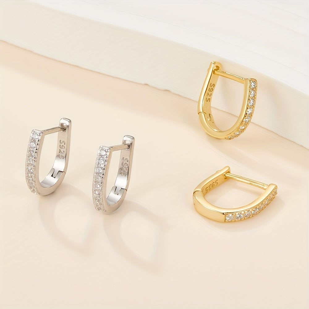 925 Silver Hoop Earrings Zircon Decor Minimalist Style Female Gift