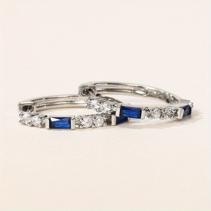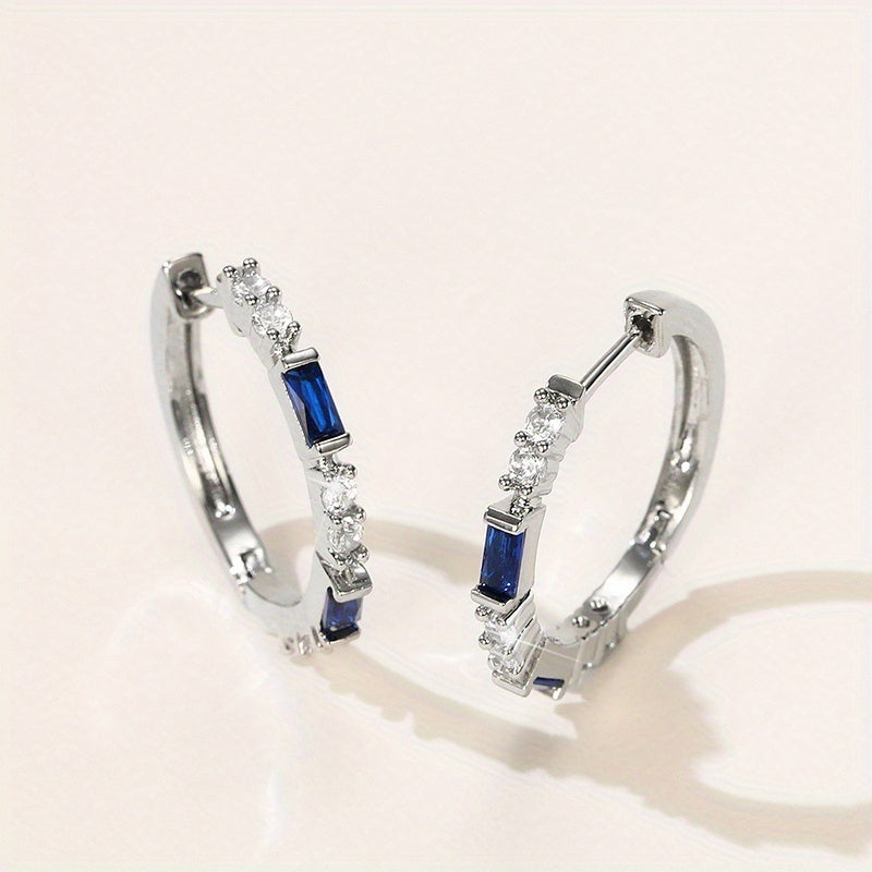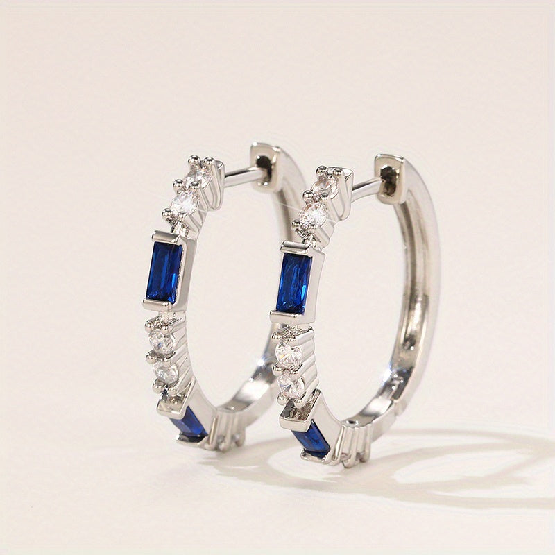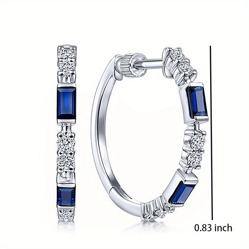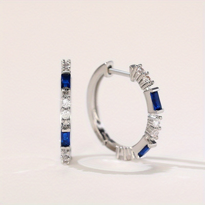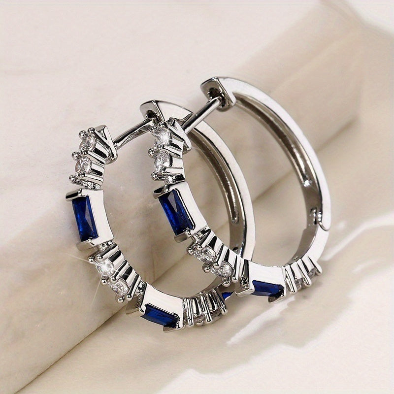Elegant and stylish hoop earrings featuring sapphire inlays, perfect for special occasions like engagements or parties.