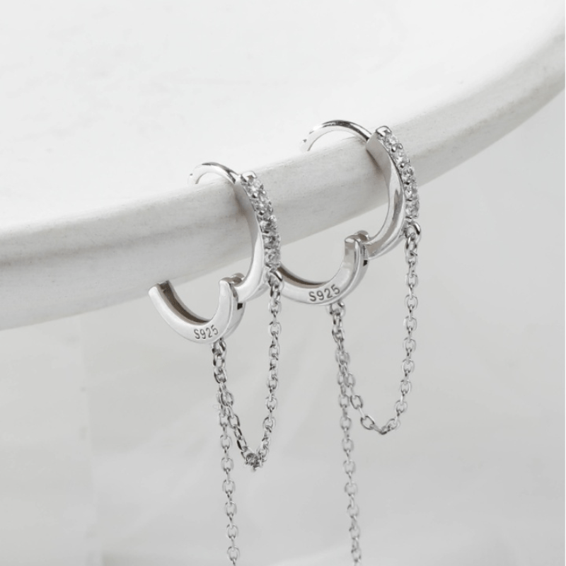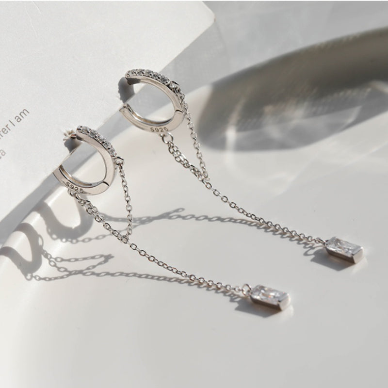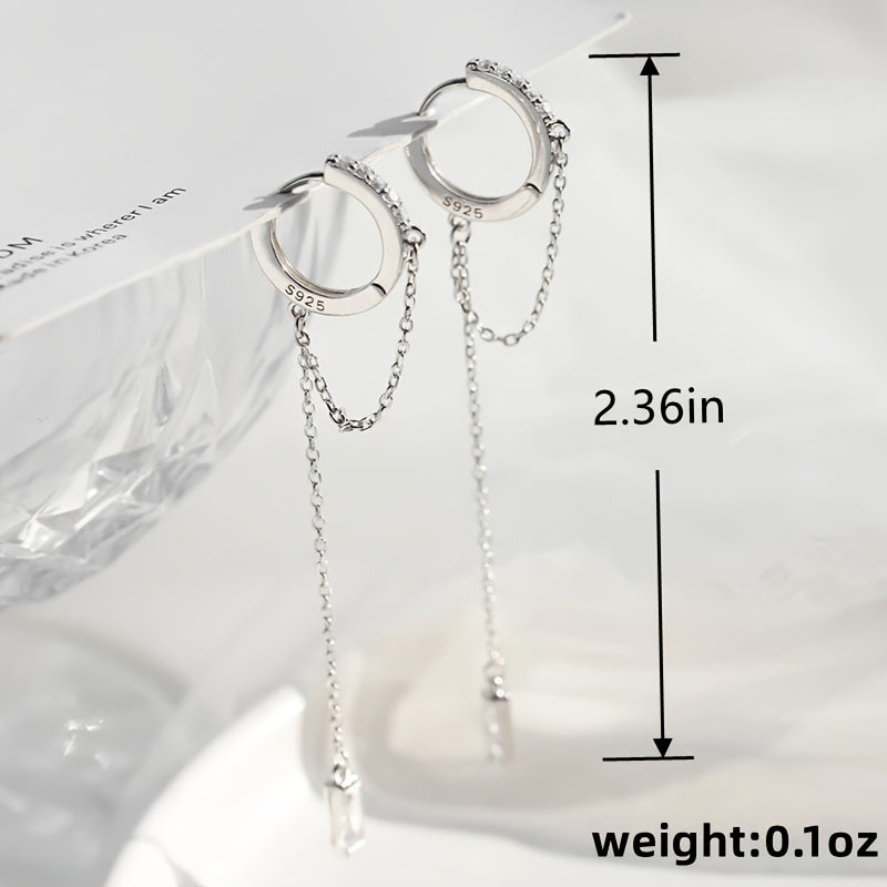 These elegant 925 silver plated earrings feature a delicate chain tassel design, perfect for adding a touch of sophistication to any outfit. Ideal as a gift for women and girls.