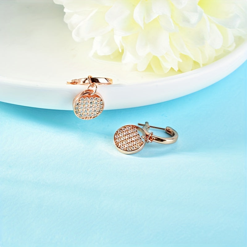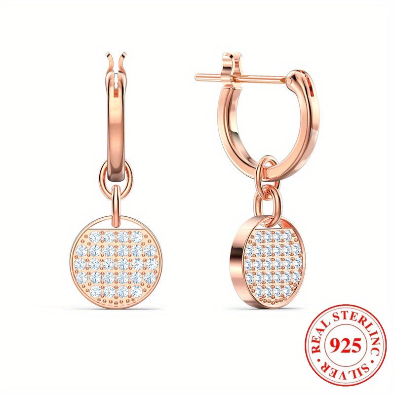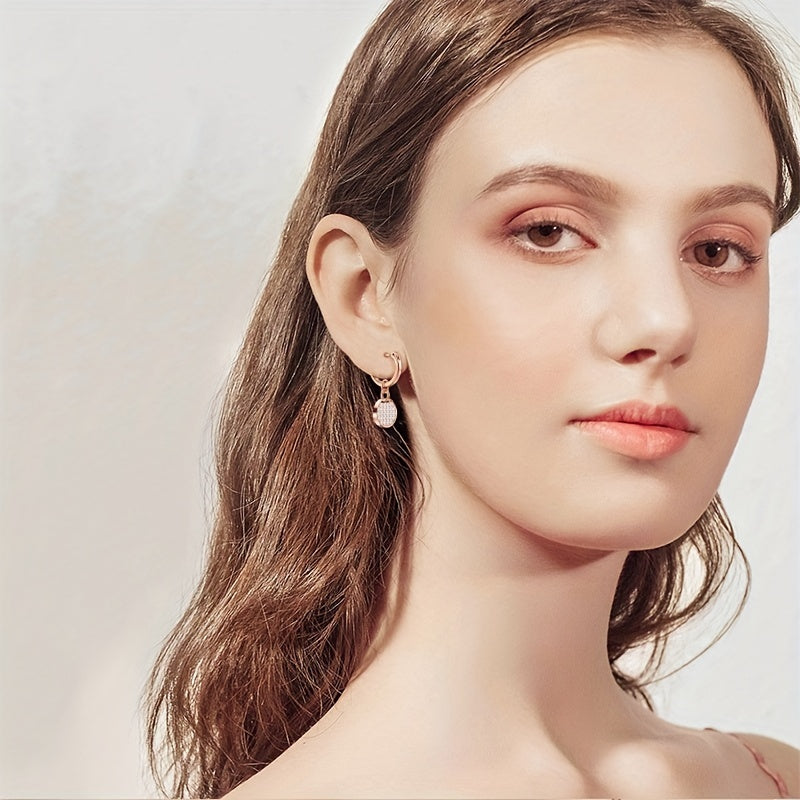 These charming 925 silver earrings feature a round racket design with dazzling zircon inlay. Perfect for daily wear or parties.