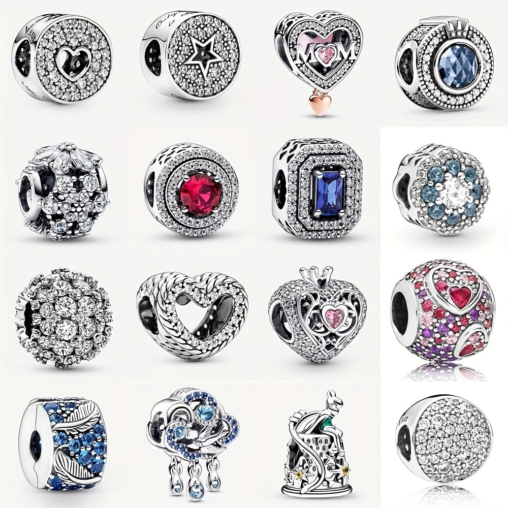 925 Silver Rhinestone Decor Large Hole Beads for Bracelet Bangle
