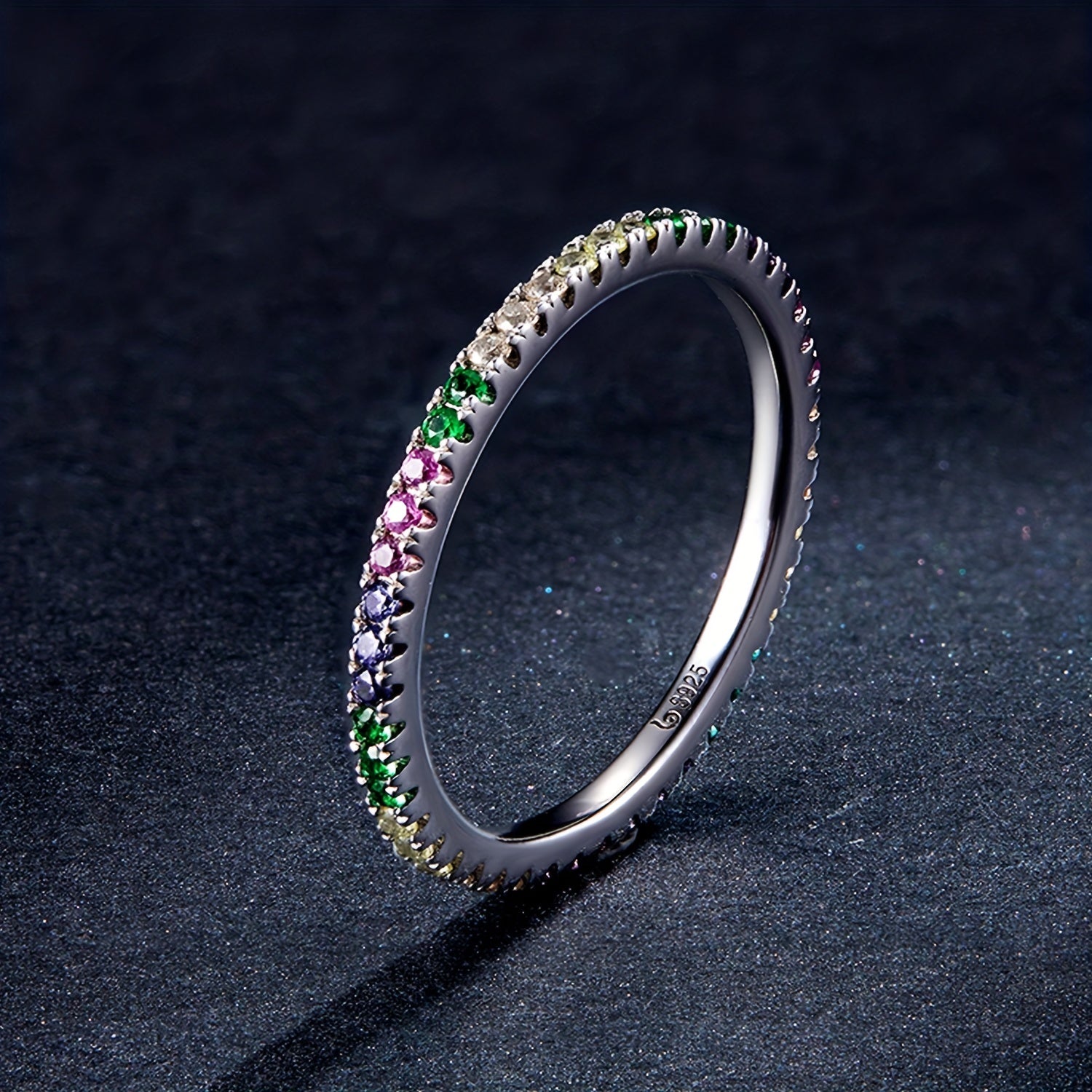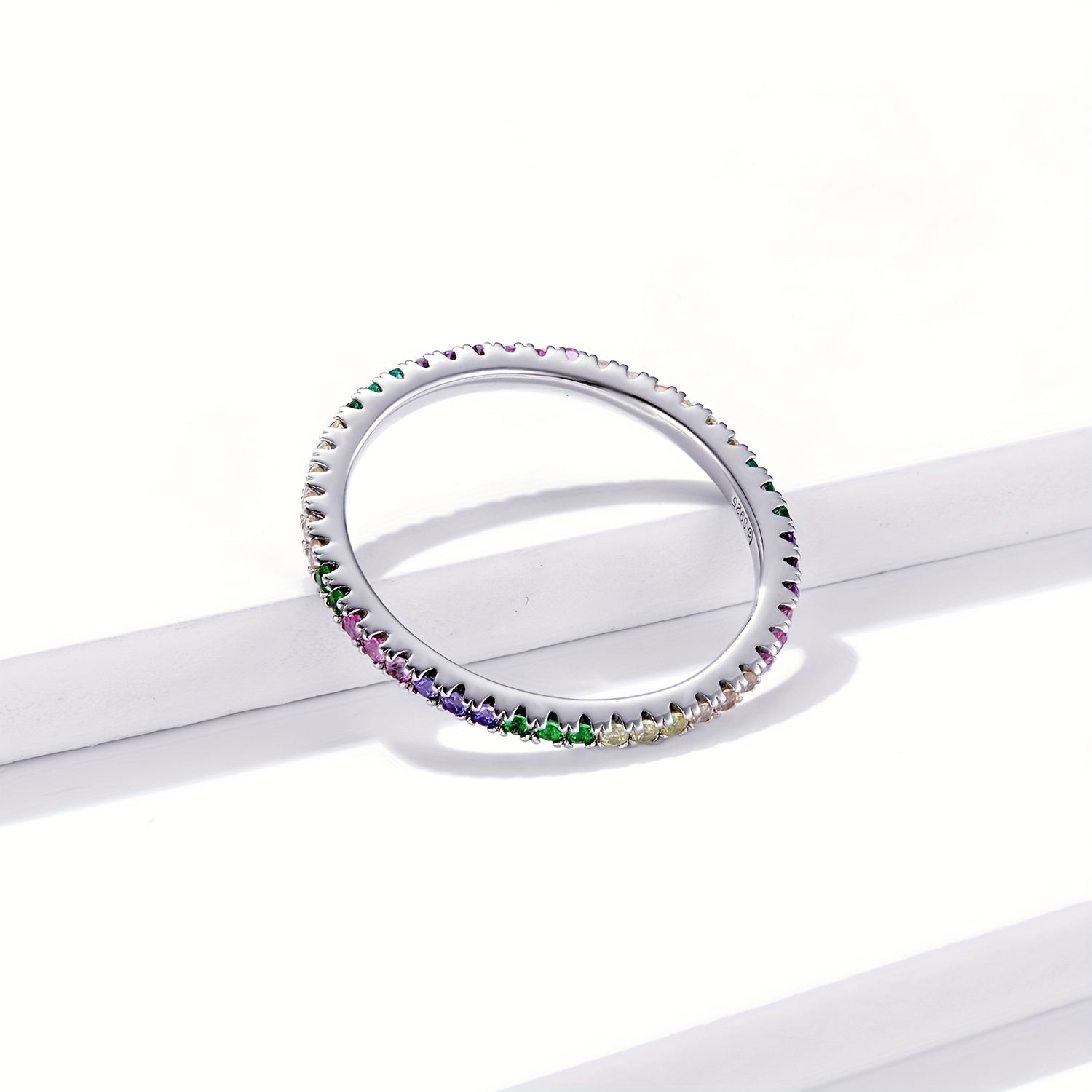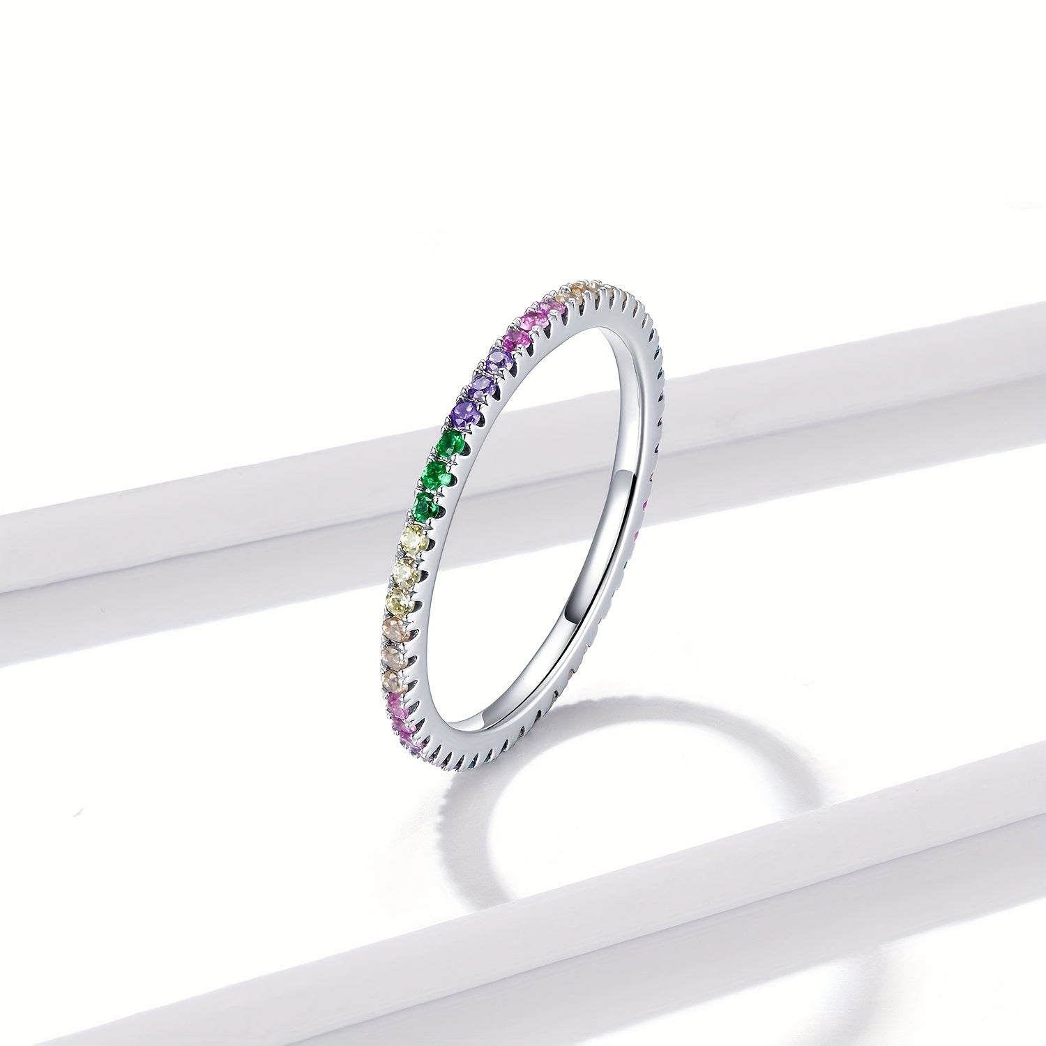 This stunning 925 sterling silver ring features colorful zircon inlays, making it a timeless and elegant piece of jewelry. Perfect as a gift for women and girls.