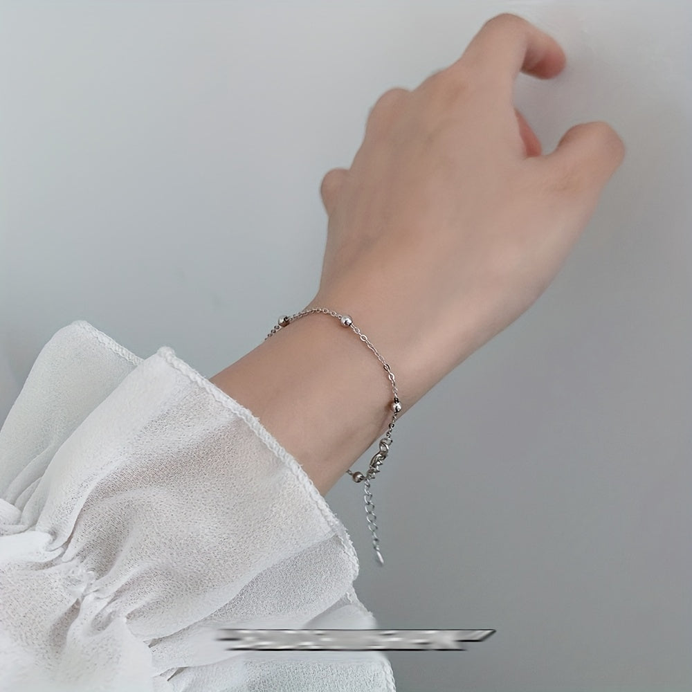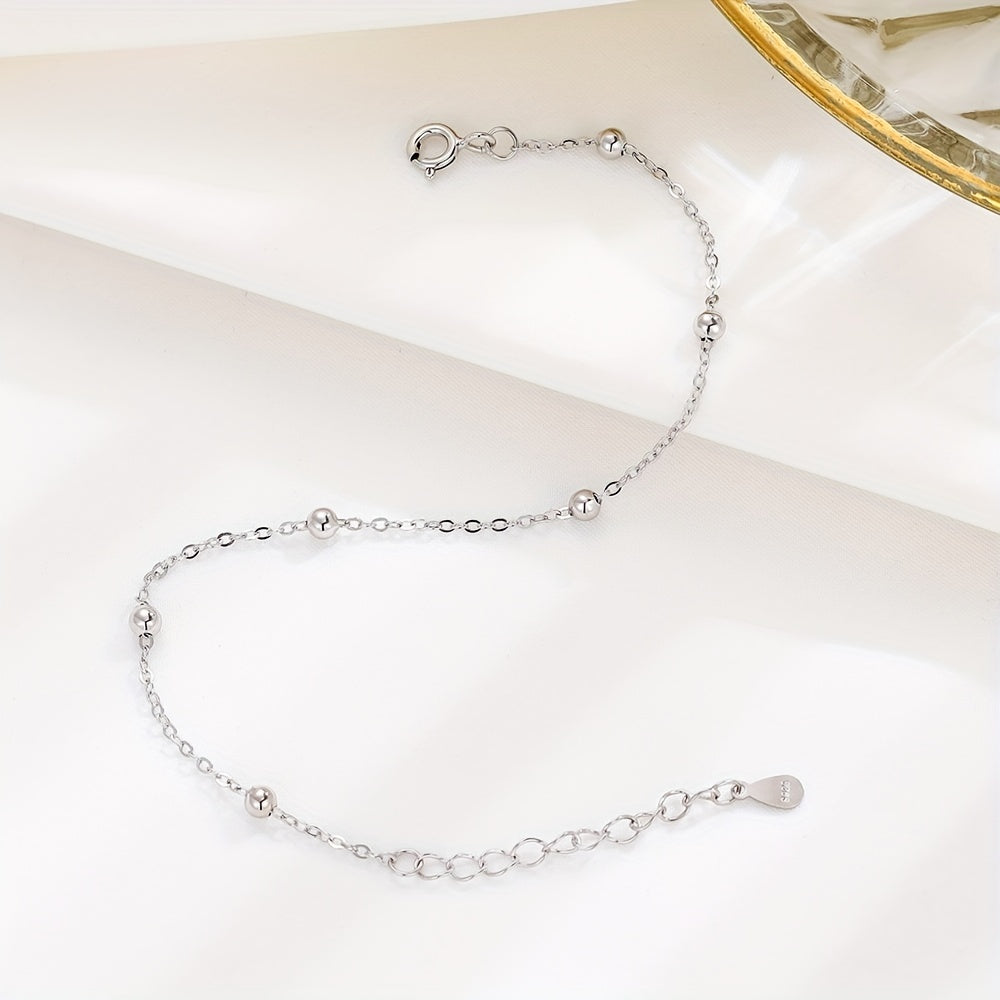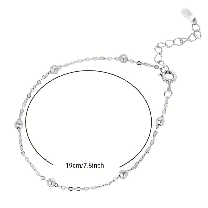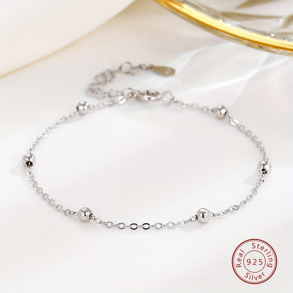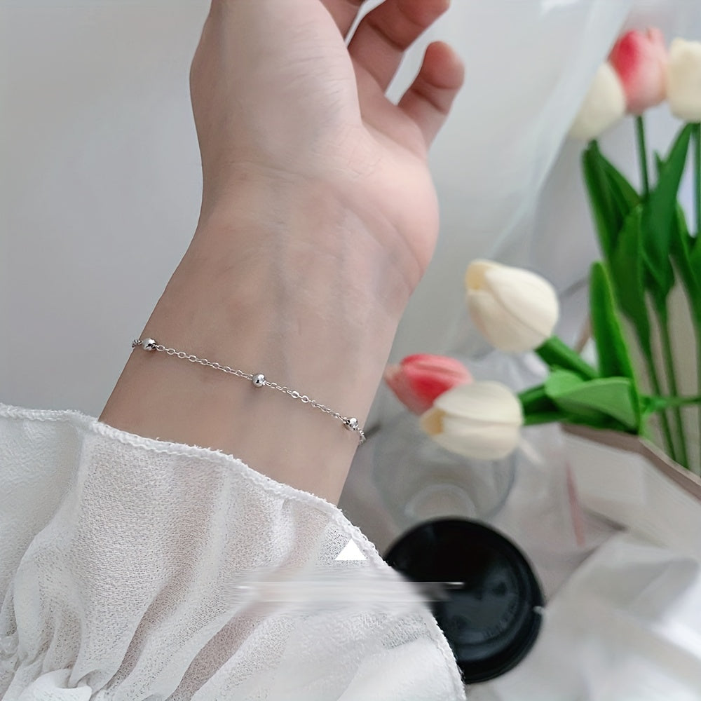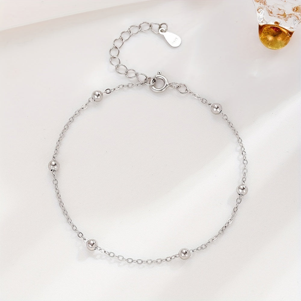 This beautiful bracelet features 925 sterling silver spacer round beads that add elegance to your wrist. The beads are strung on a delicate chain, creating a stunning piece of hand jewelry.