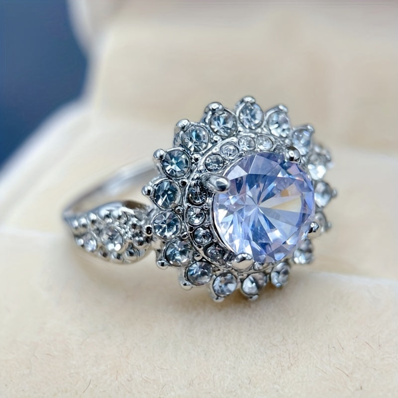 Add a touch of elegance with this stunning 925 silver plated round-shaped crystal zircon ring. Perfect for anniversary, parties, and weddings. Elevate your style with this glamorous accessory.