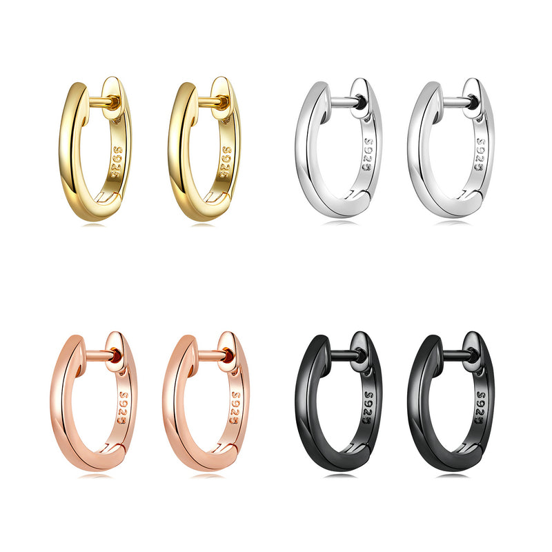 These stylish hoop earrings are made of 925 sterling silver with a mix of silvery, golden, and rose colors. Perfect for adding a fashionable touch to any outfit.