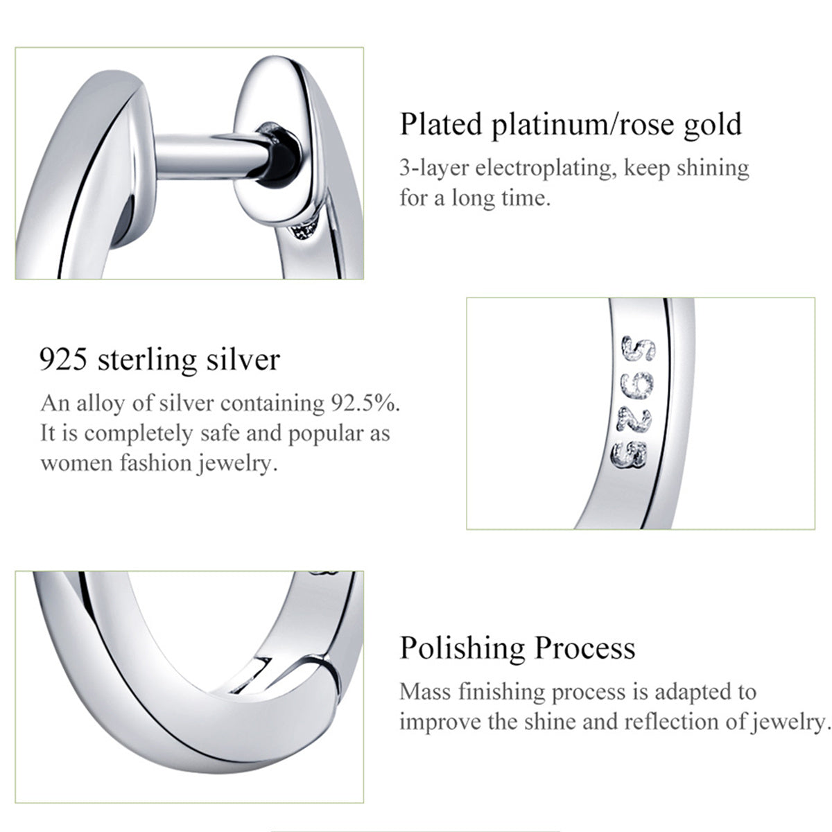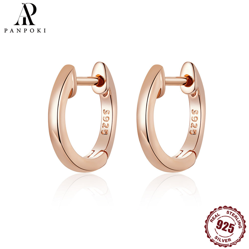 925 Silver Round Earrings Silvery Golden Rose Hoop Earrings