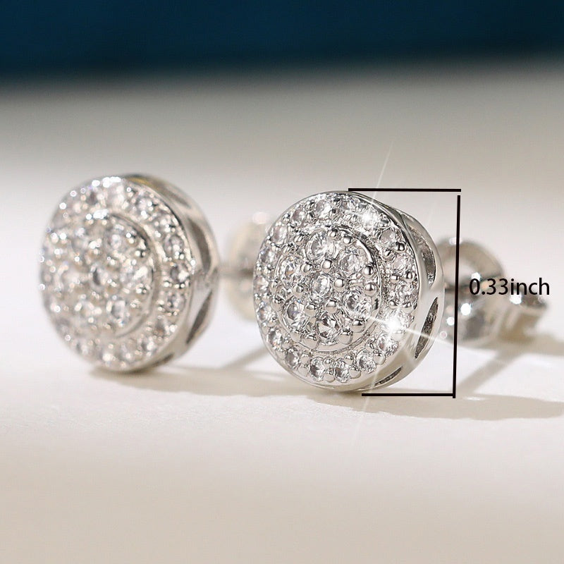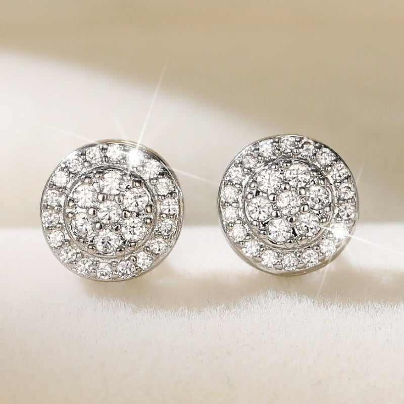 925 Silver Round Zircon Stud Earrings for Women Bridal Wedding Jewelry
