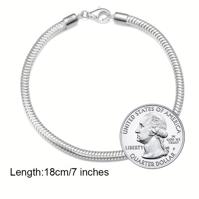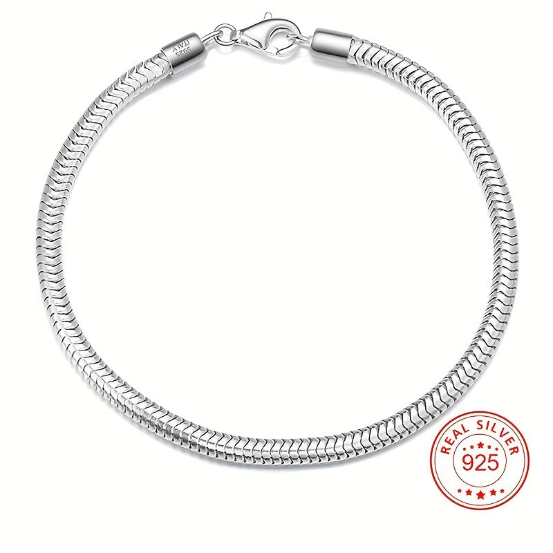 925 Silver Snake Chain Bracelet Women Men Teens Charm