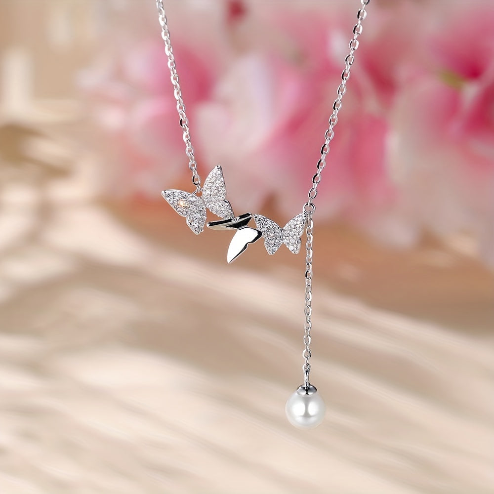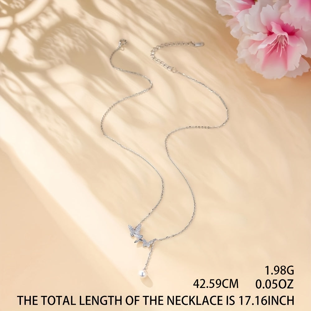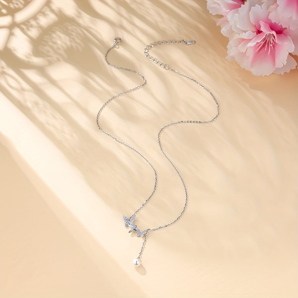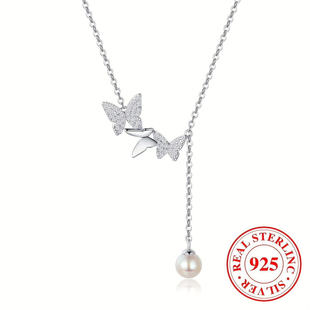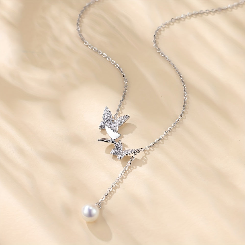 Add a touch of elegance to your outfit with this stunning 925 sterling silver sparkle butterfly tassel necklace. The necklace features a freshwater pearl collarbone chain for a sophisticated and glamorous look.