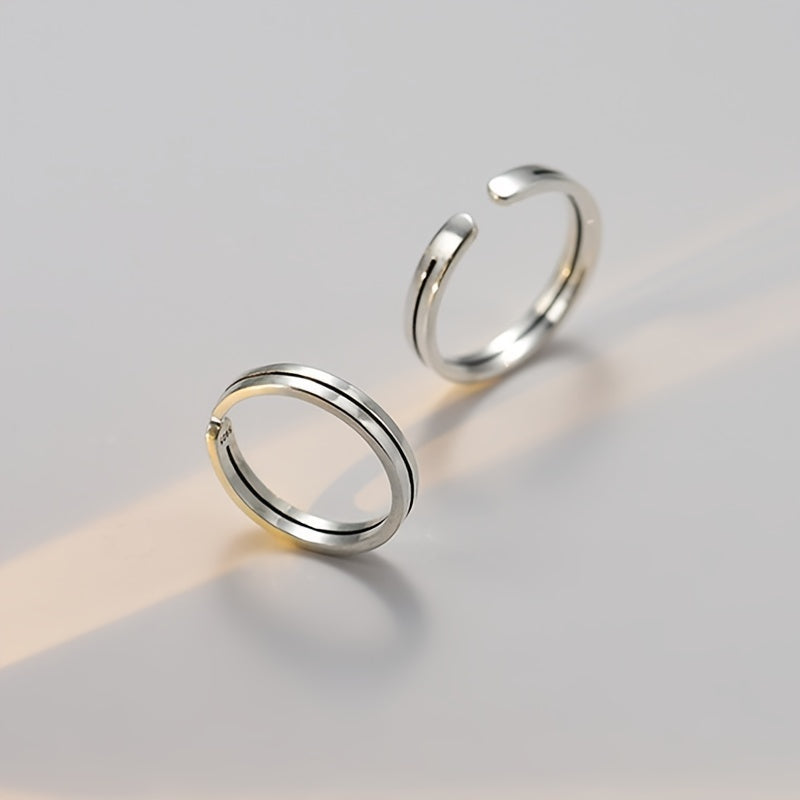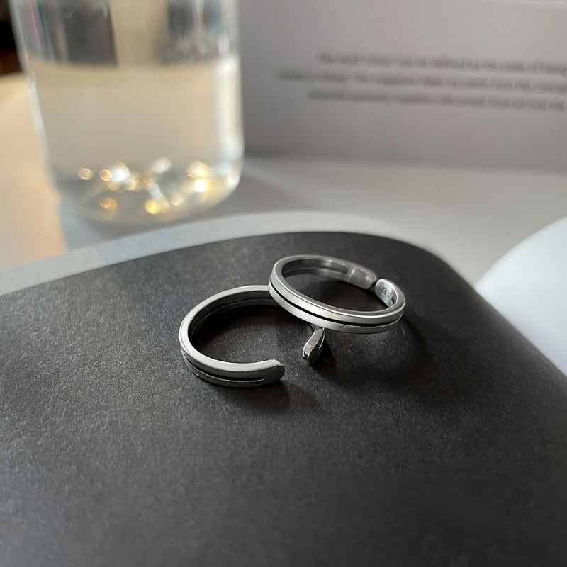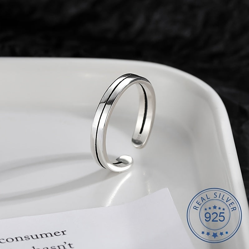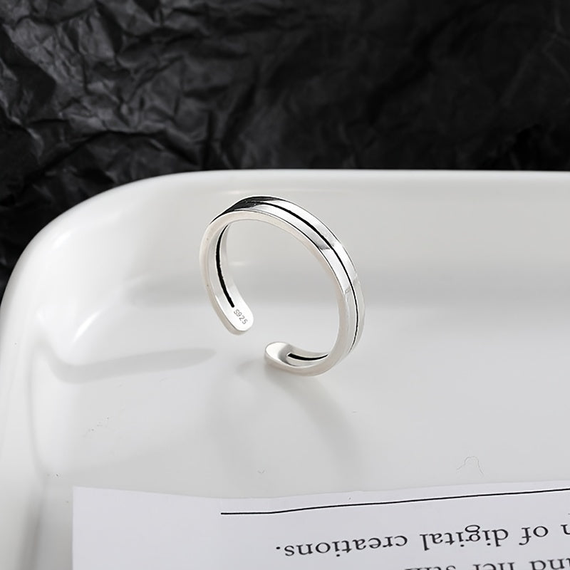 925 Silver Vintage Men's Striped Ring Double Layered Line