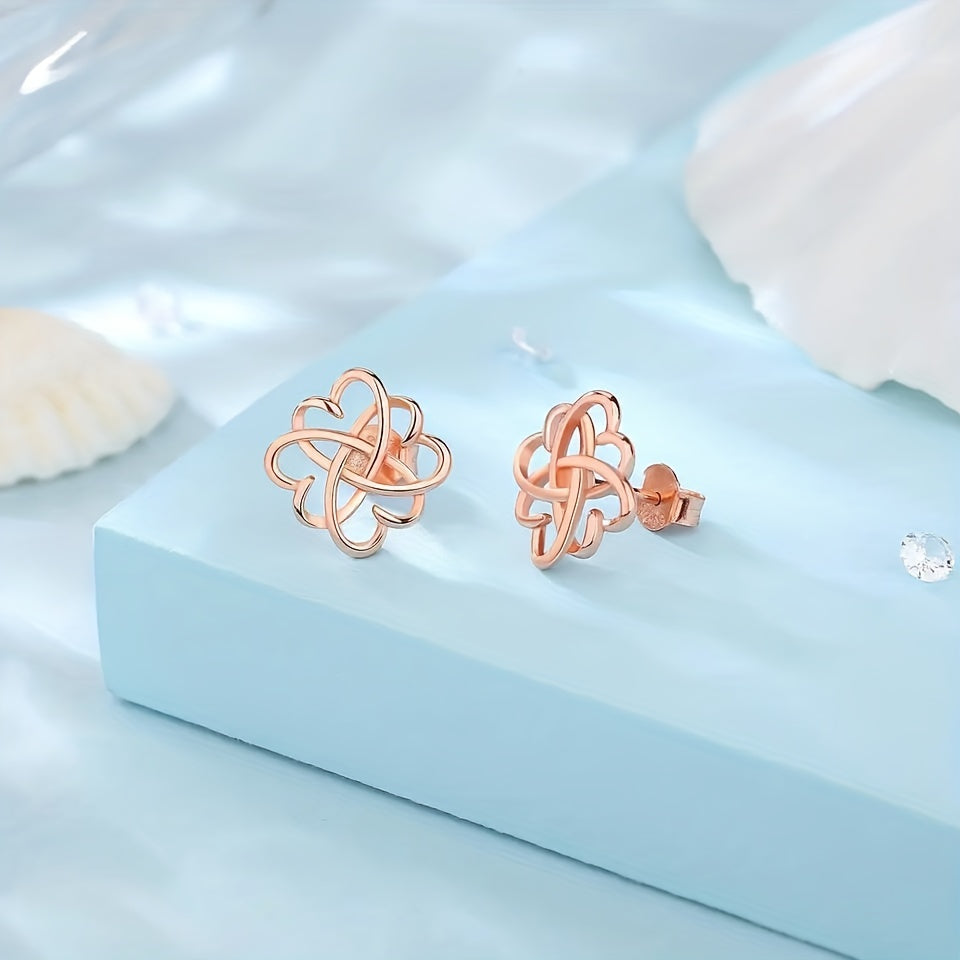These stud earrings feature a beautiful vintage rose design with intricate Celtic Irish knots. Made of 925 sterling silver and plated with 18K gold, these earrings make a perfect gift for any occasion.