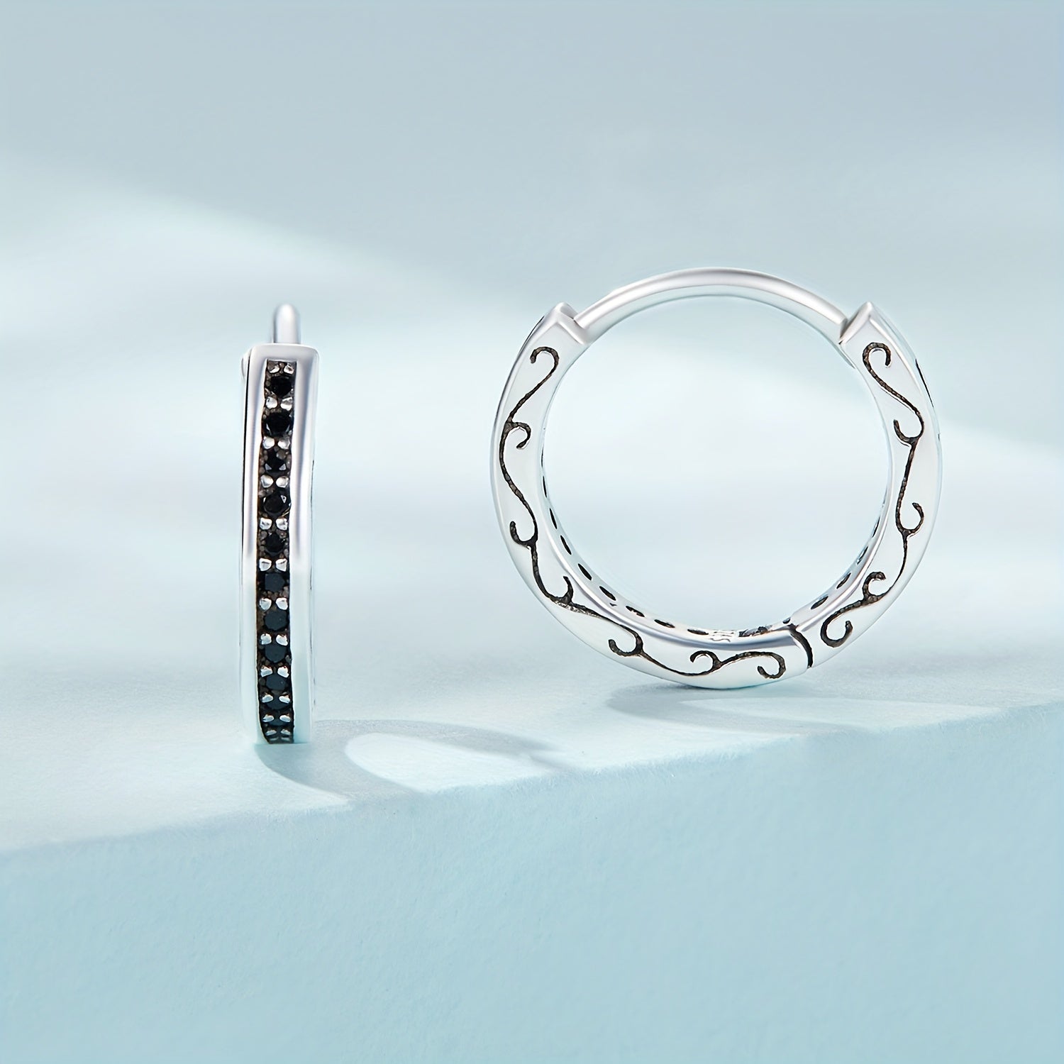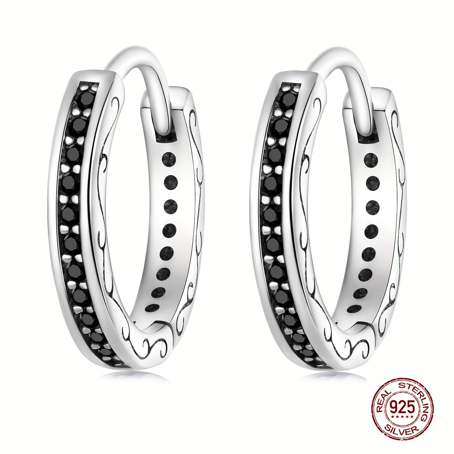 Add a touch of retro style to your daily look with these 925 sterling silver hoop earrings featuring zircon accents. Perfect for casual wear and adding a hint of sparkle to any outfit.