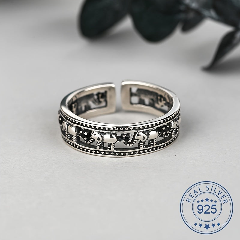 Add a touch of vintage charm to your jewelry collection with this 925 sterling silver elephant ring. The hollow design and distressed finish give it a unique look that is perfect for stacking with other rings.