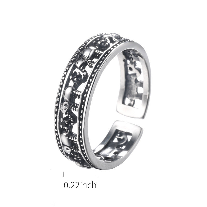 925 Sterling Silver Elephant Hollow Ring Vintage Style Distressed Stacking