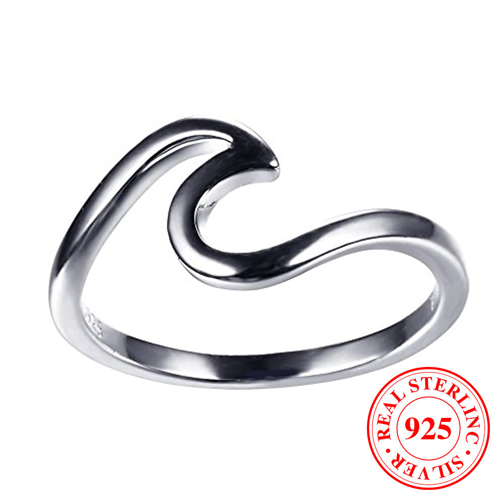 925 Sterling Silver Wave Ring for Women Girls Gift