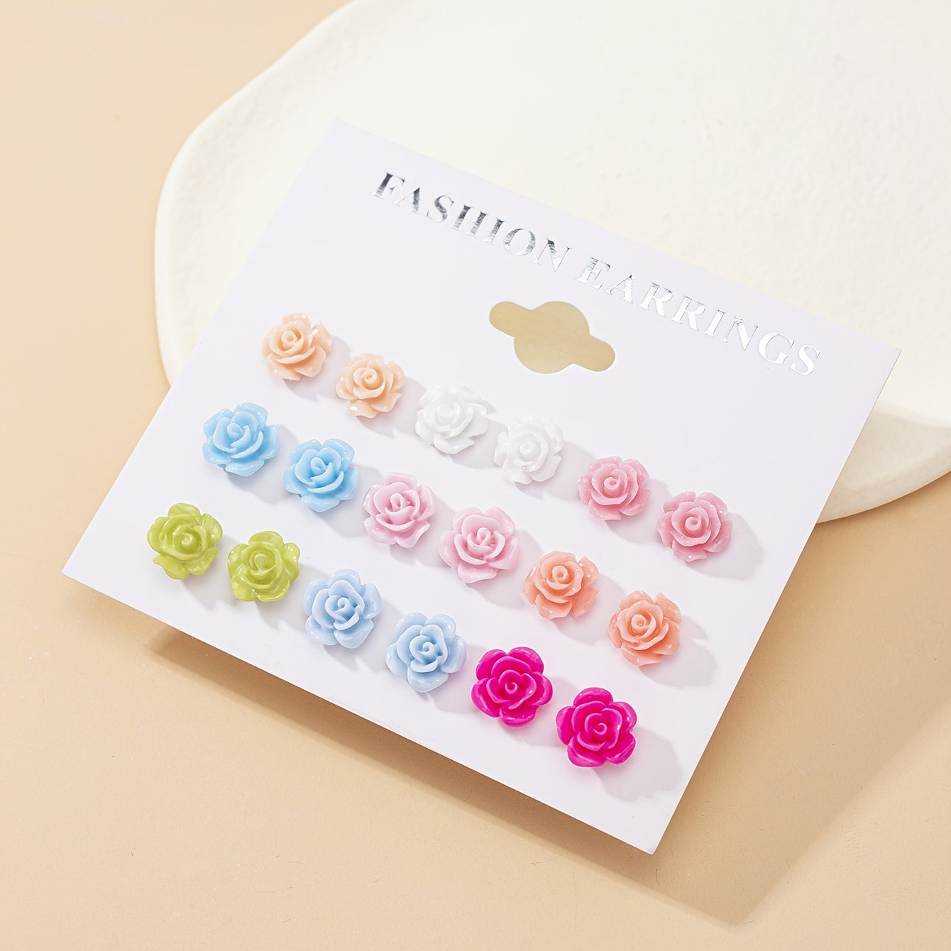 Plastic flower earrings set perfect for daily wear and various occasions. A colorful addition to your accessory collection.