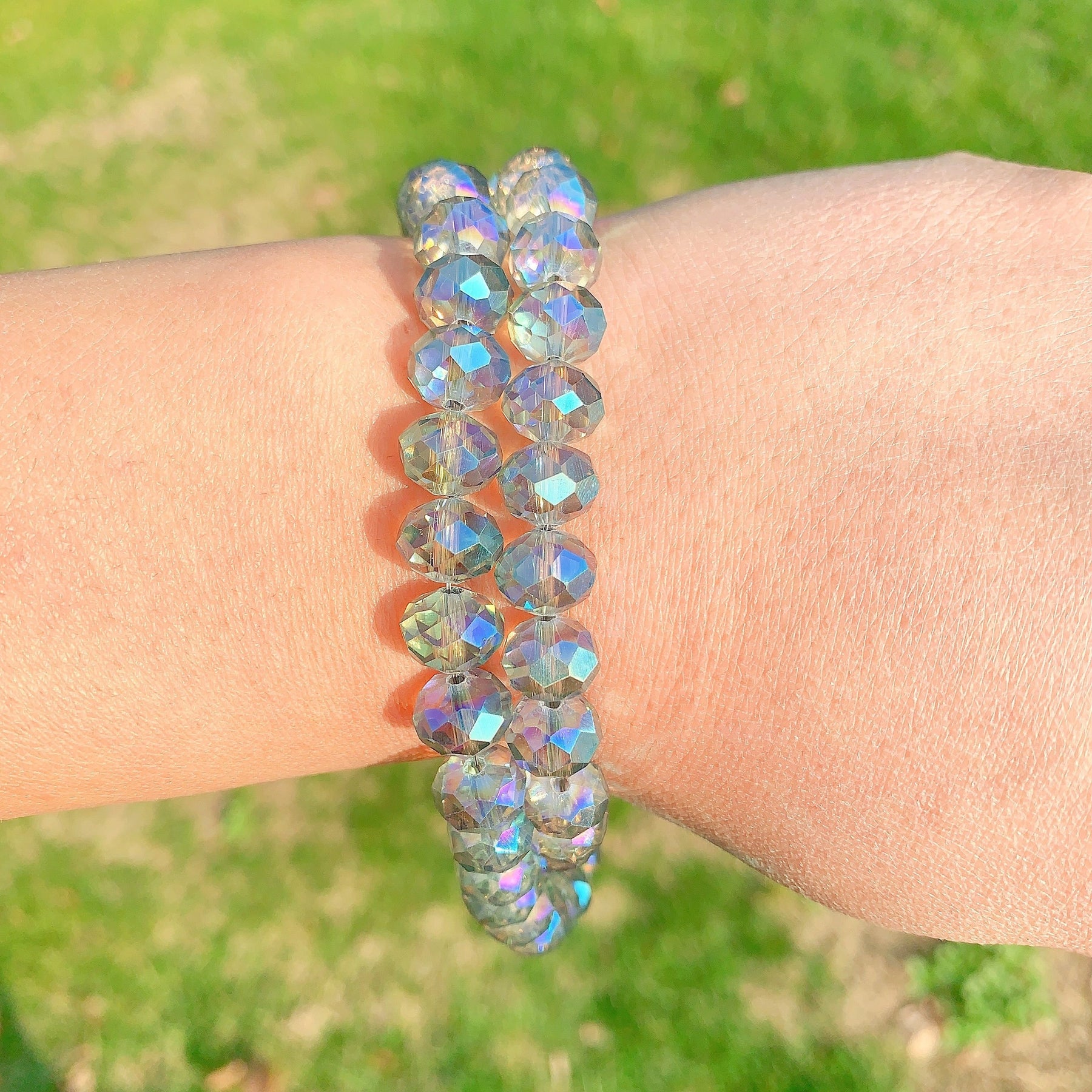 Elevate your jewelry-making with this set of crystal beads plated with AB finish, perfect for creating stunning bracelets and accessories.