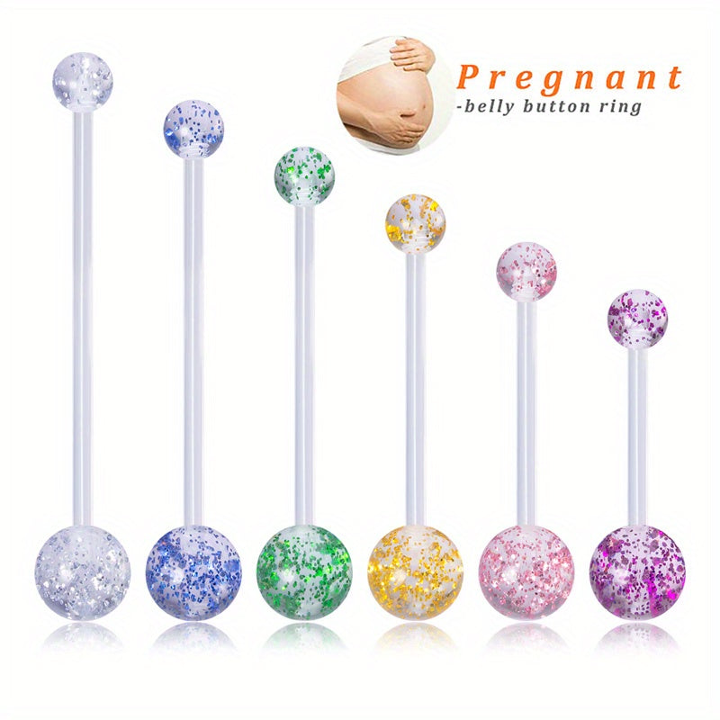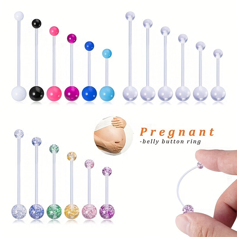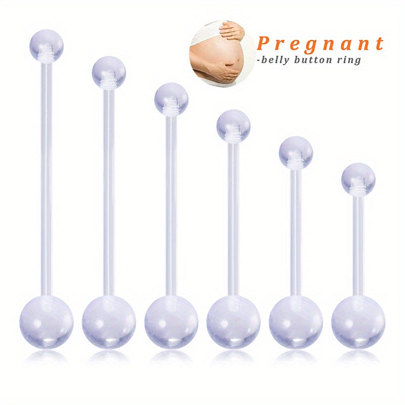 Stay stylish during pregnancy with these clear acrylic long bar belly button rings. Perfect for belly piercings, these rings are comfortable and safe to wear.
