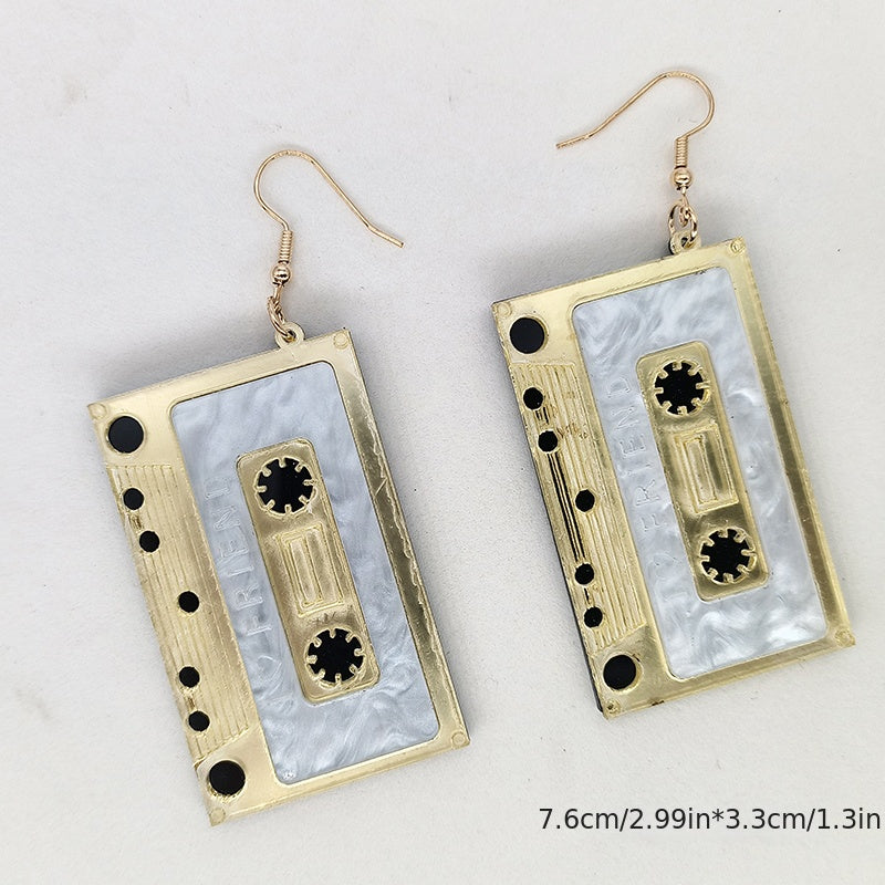 Add a touch of retro style to your look with these acrylic tape drop earrings. Perfect for parties and events, these earrings are a fun and unique accessory.
